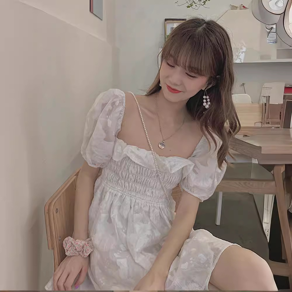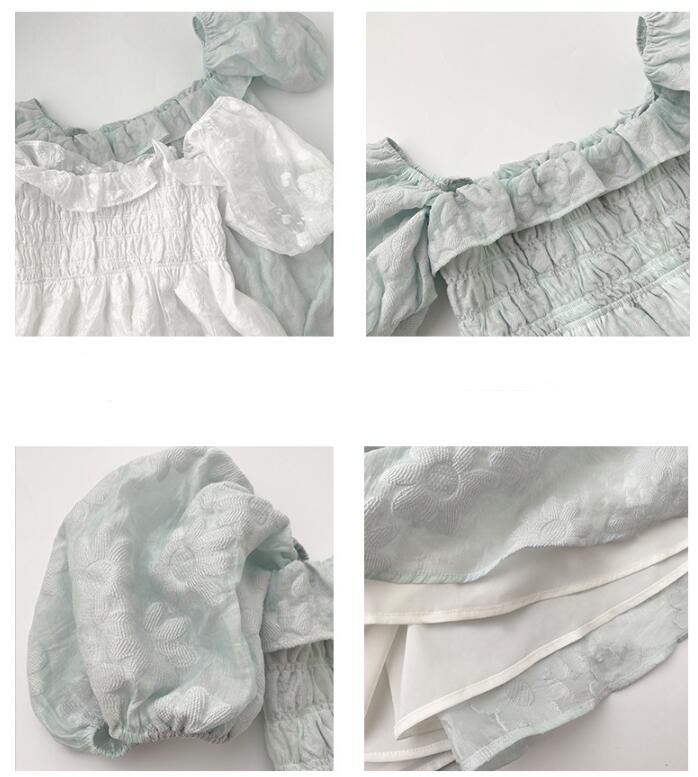 パフスリーブとシャーリングデザインが女性らしさを演出します。