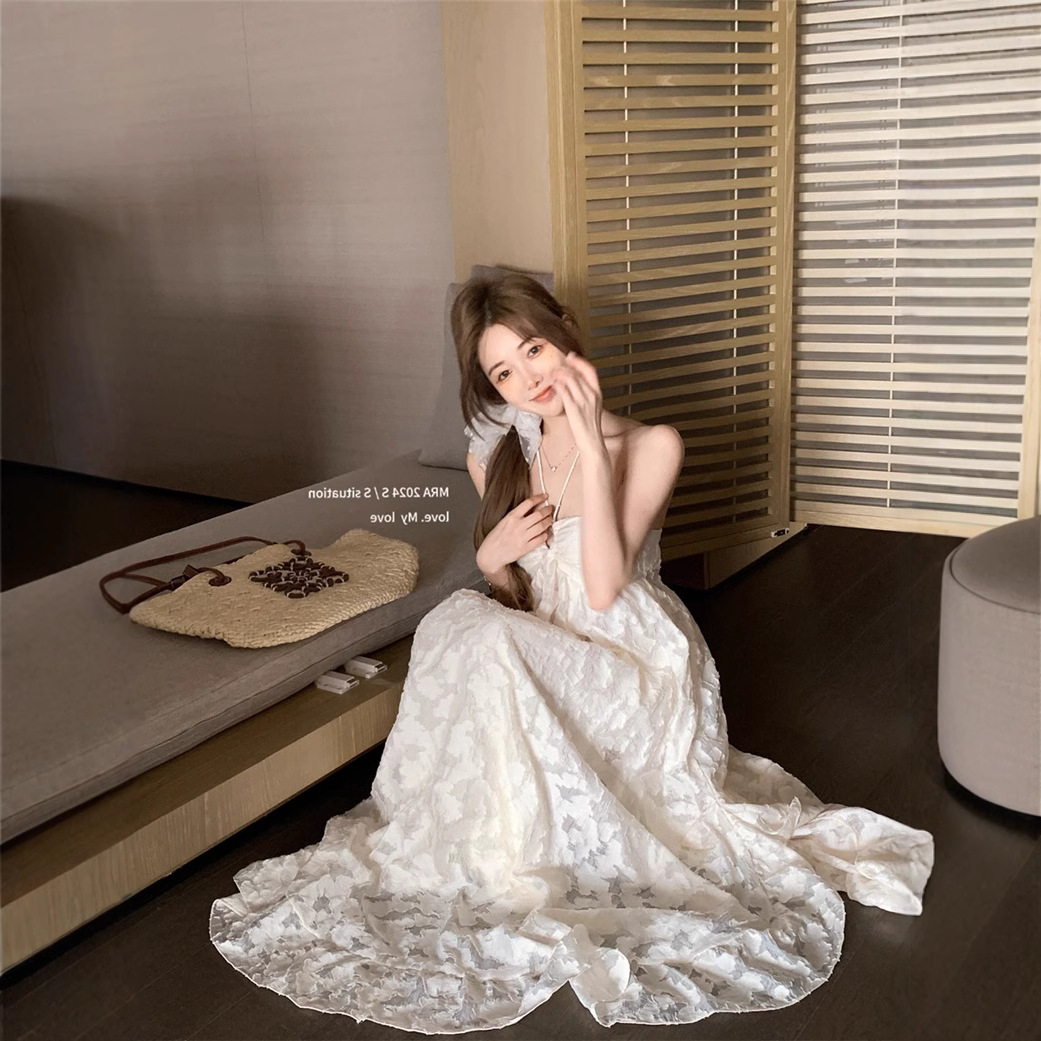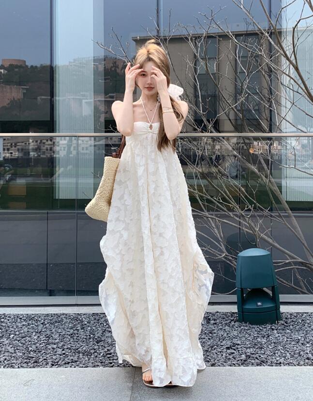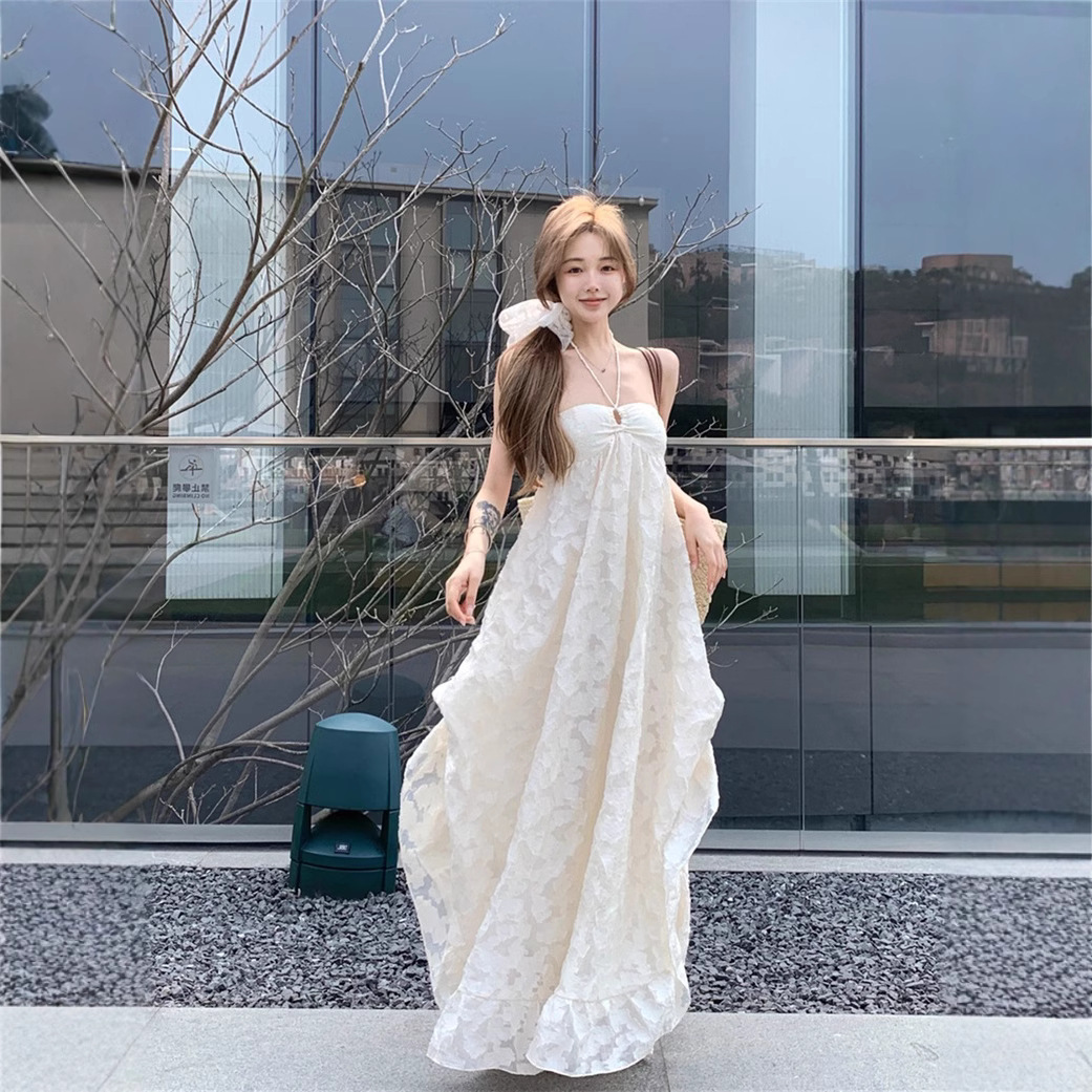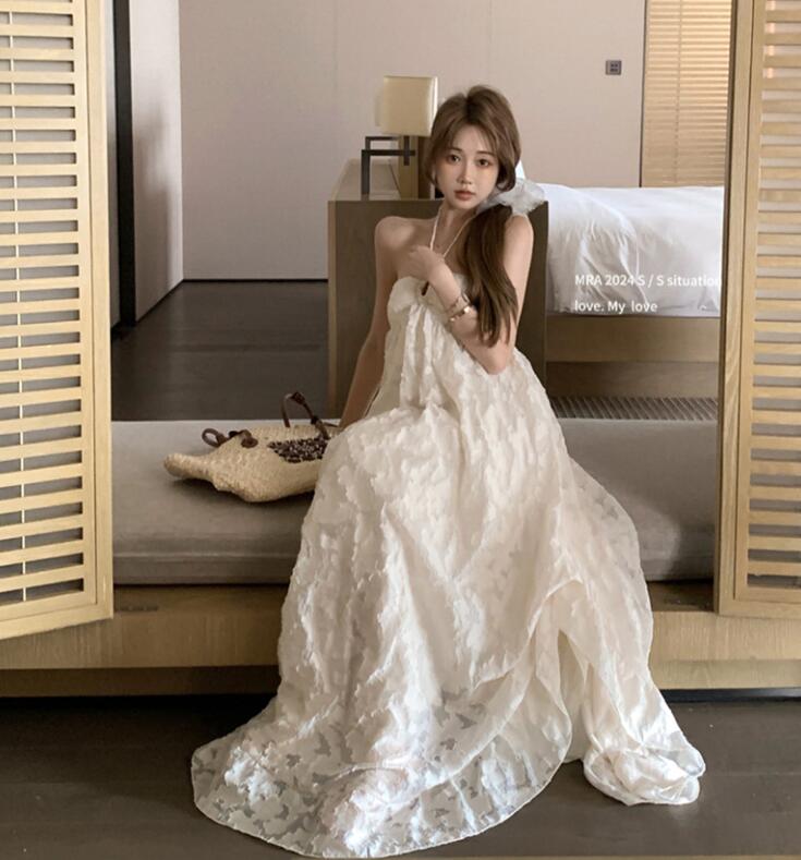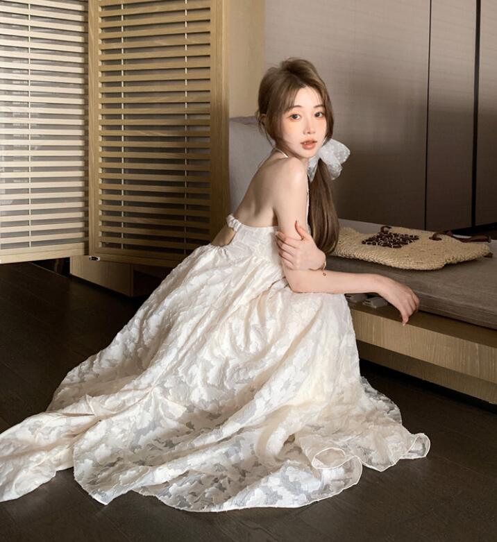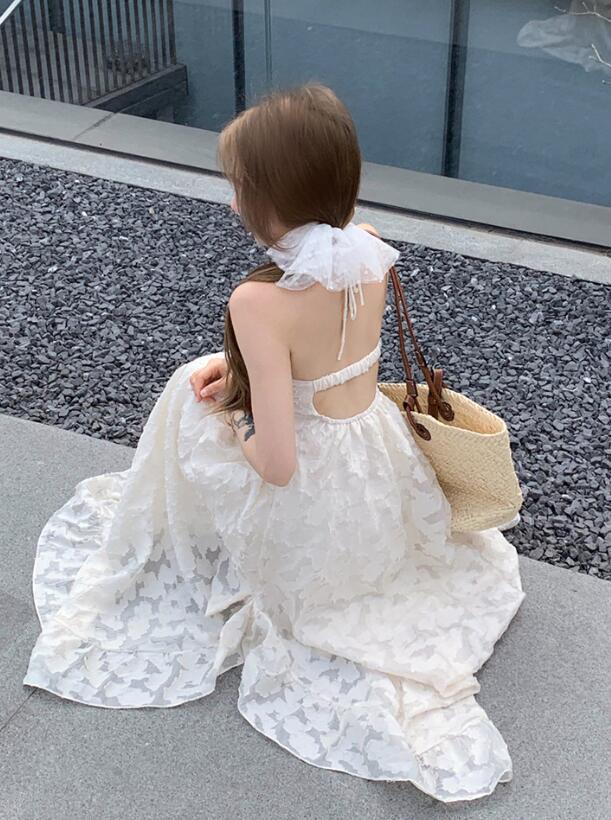 背中開きのホルターネックデザインで女性らしさを演出します。
