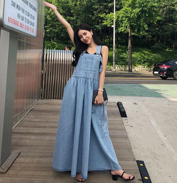 ゆったりとしたサロペットデザインで、気になる体型もしっかりカバー。