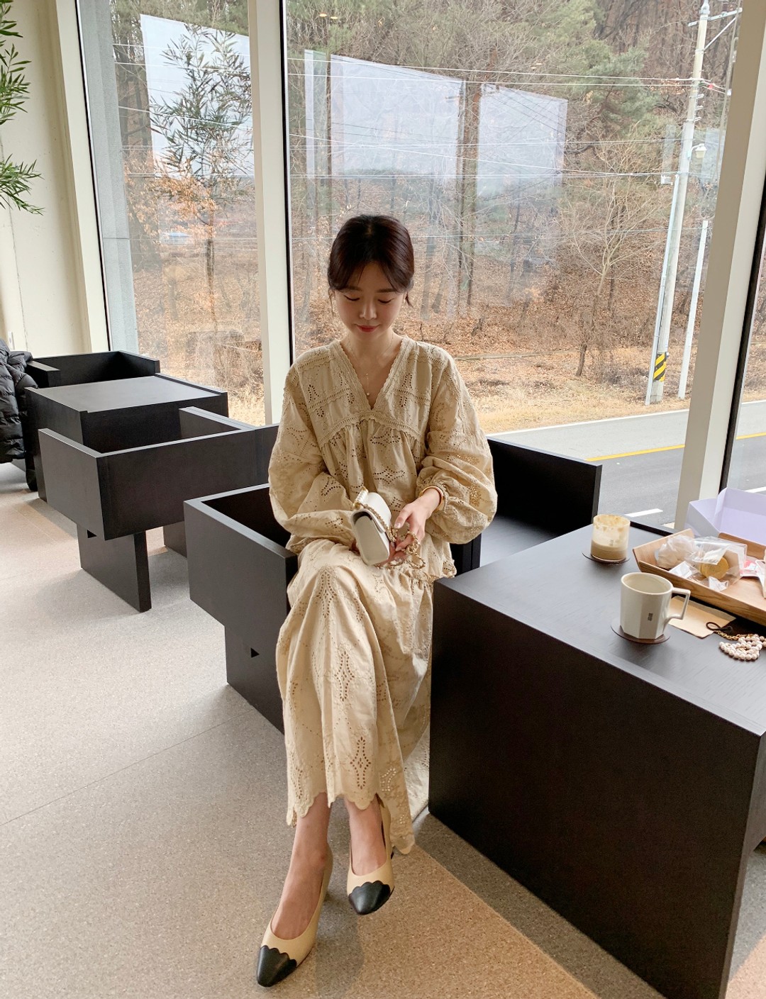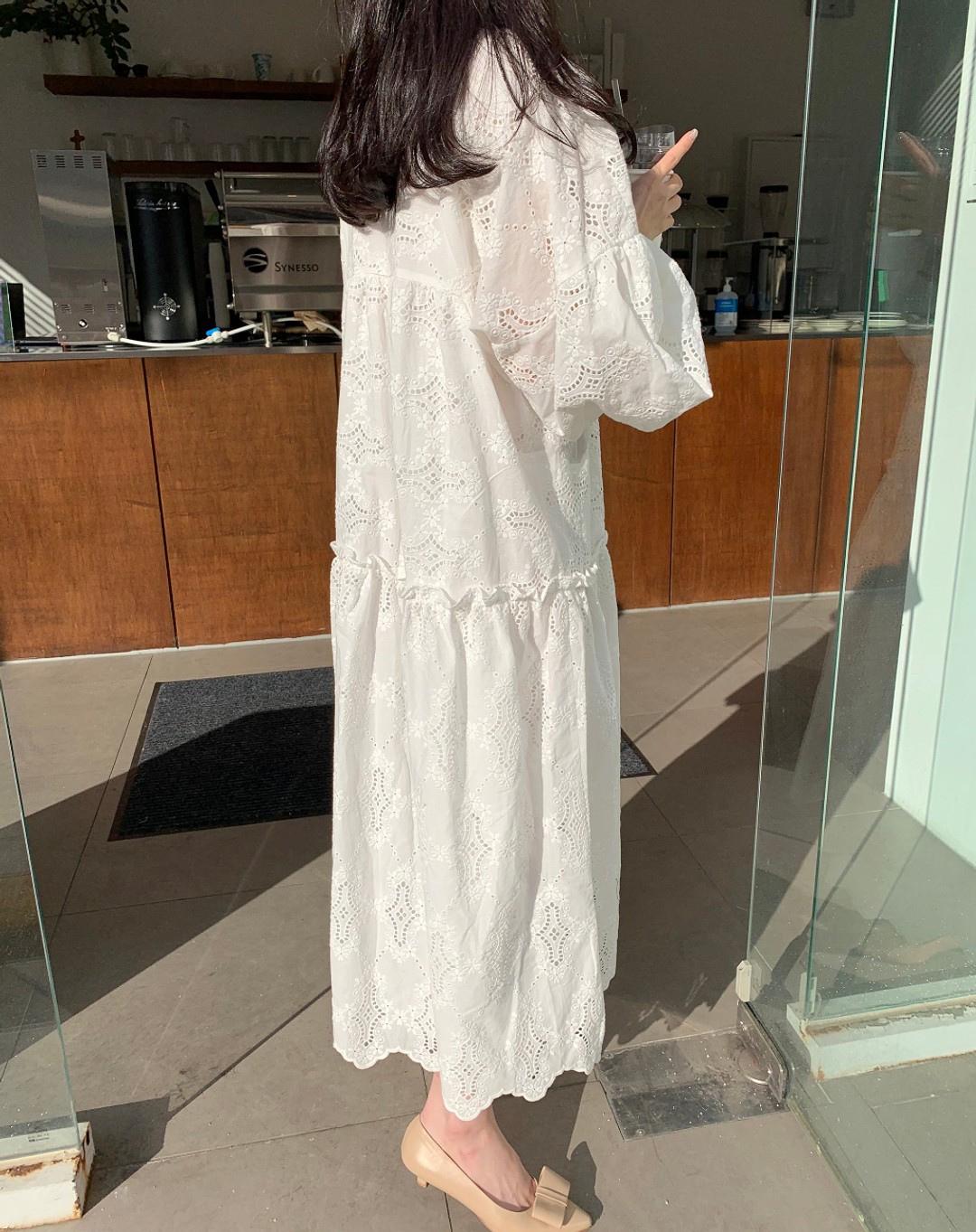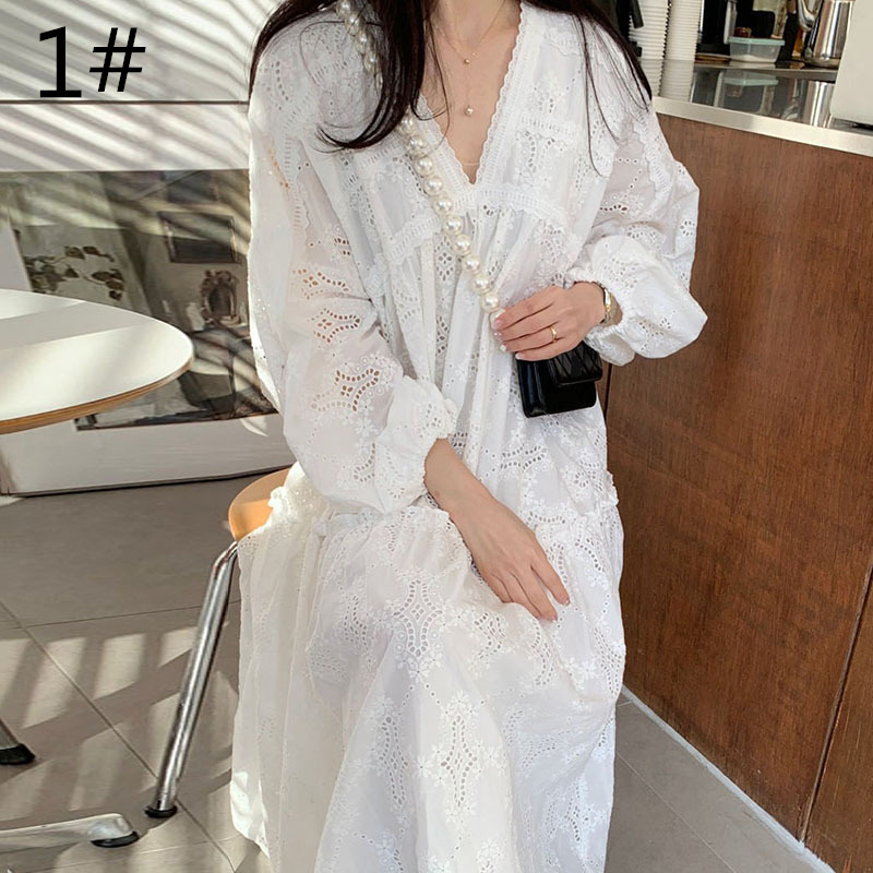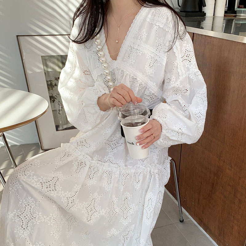 繊細なレース刺繍が美しいゆったりとしたデザインのロングワンピースが登場しました。