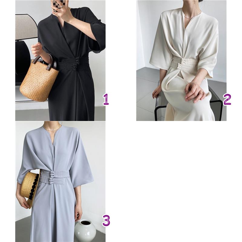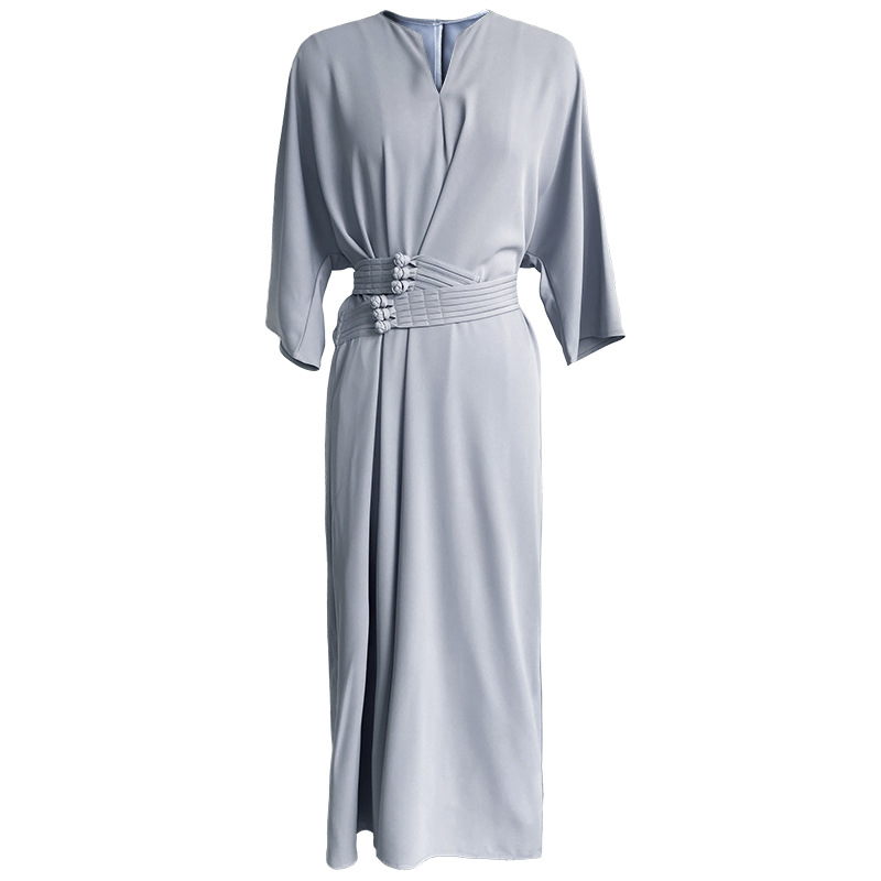 エレガントなフレアシルエットが美しいロングワンピースです。