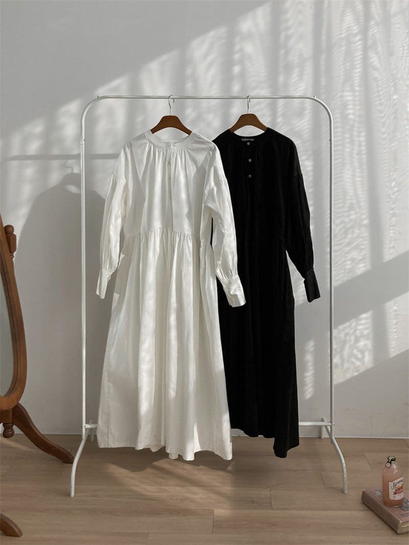 ロングワンピースならではの上品なシルエットで、一枚で美しく決まります。