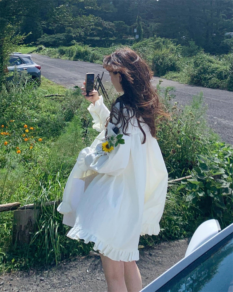 袖口と裾の繊細なフリルが女性らしさを演出し、これからの季節はもちろんロングシーズン活躍します。
