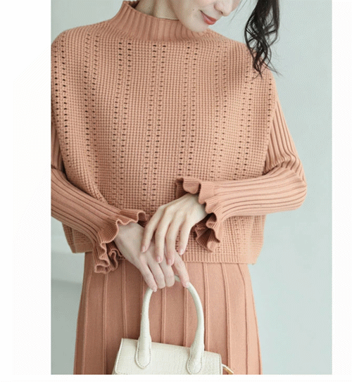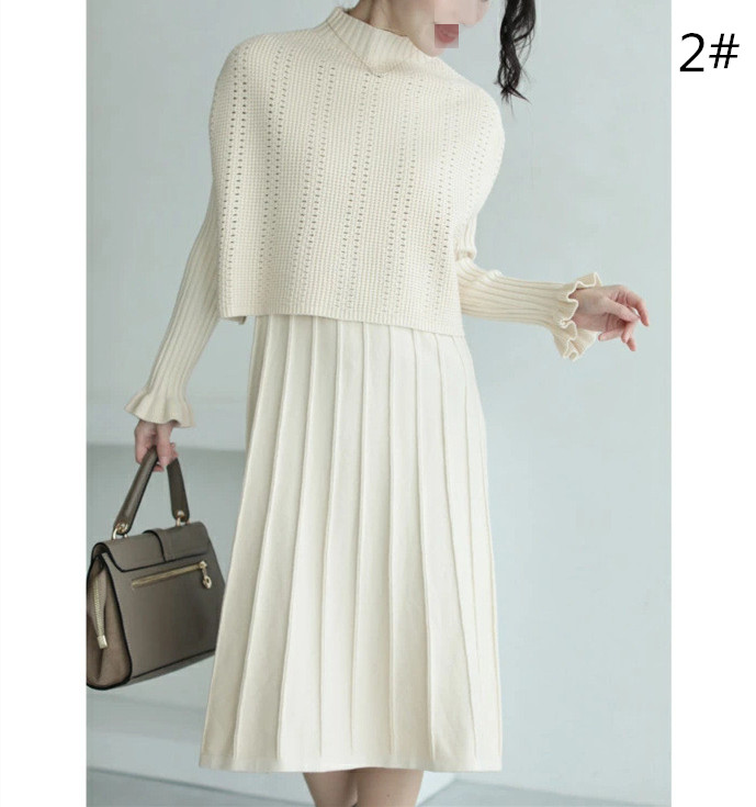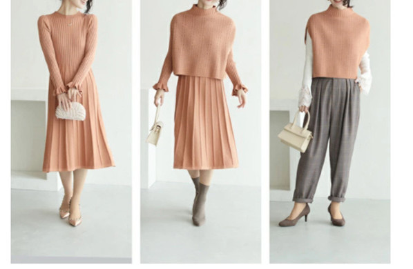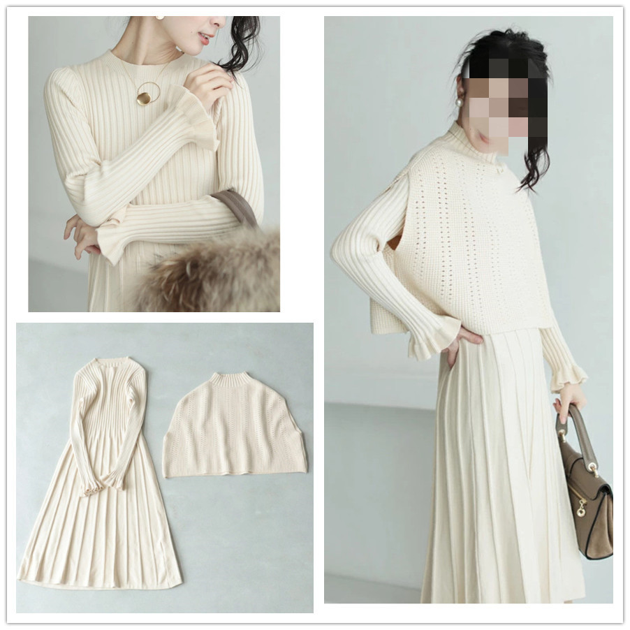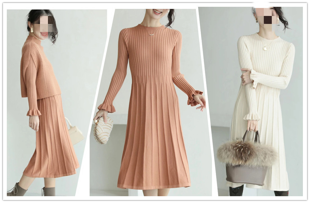 上品で大人可愛いニットセーター+プリーツスカートのセットアップが新登場♪