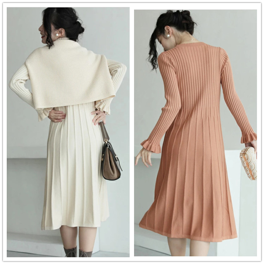 ロングワンピース風の着こなしも楽しめる優雅なニットアイテムです。