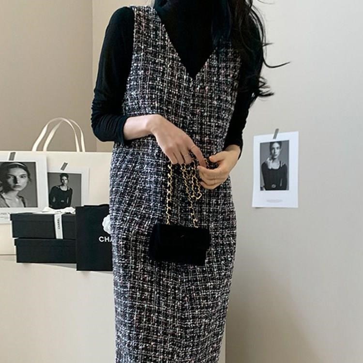 高級感あふれるツイード素材を使用したロングワンピースです。