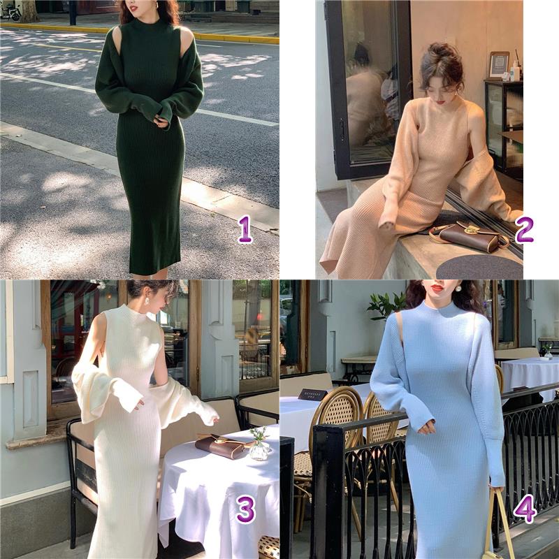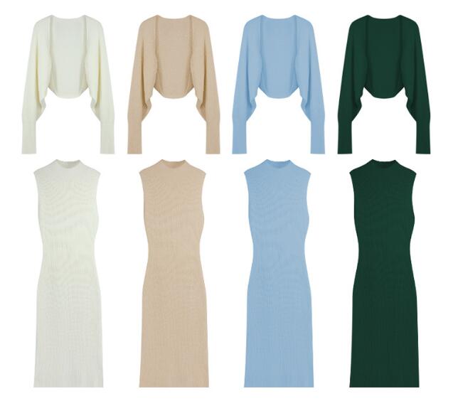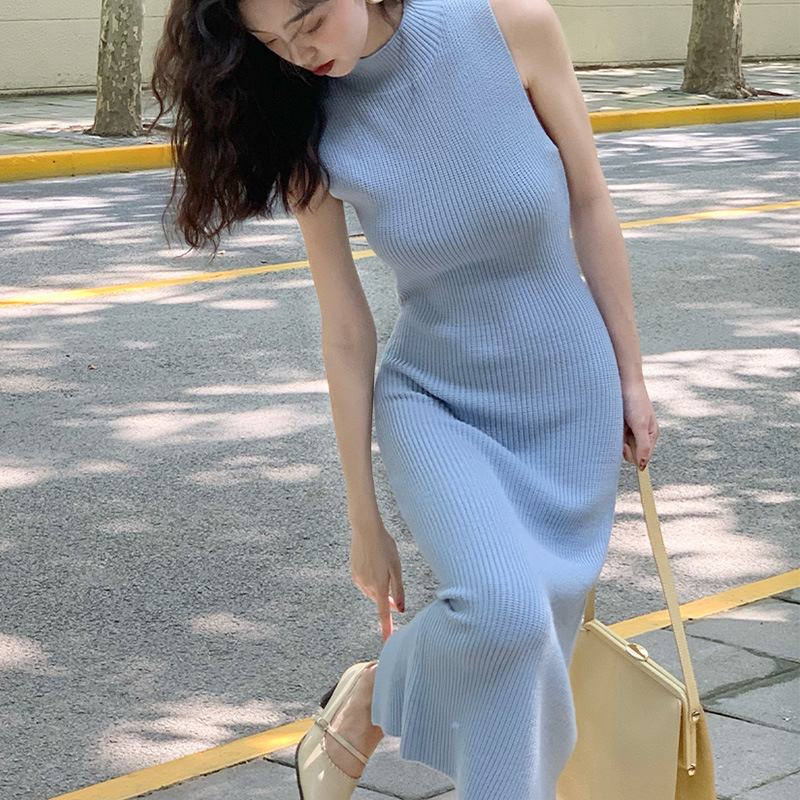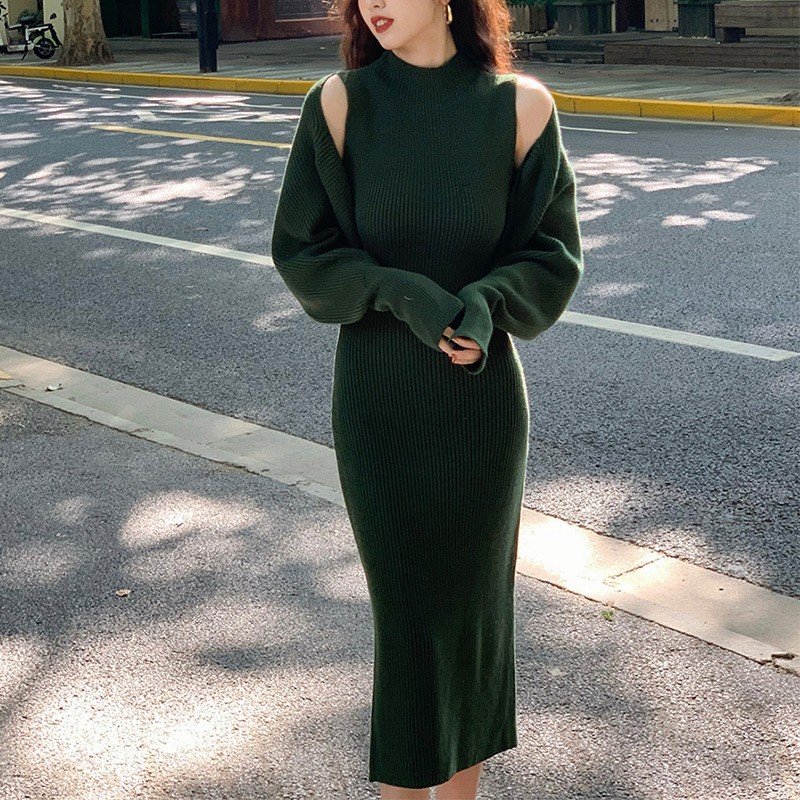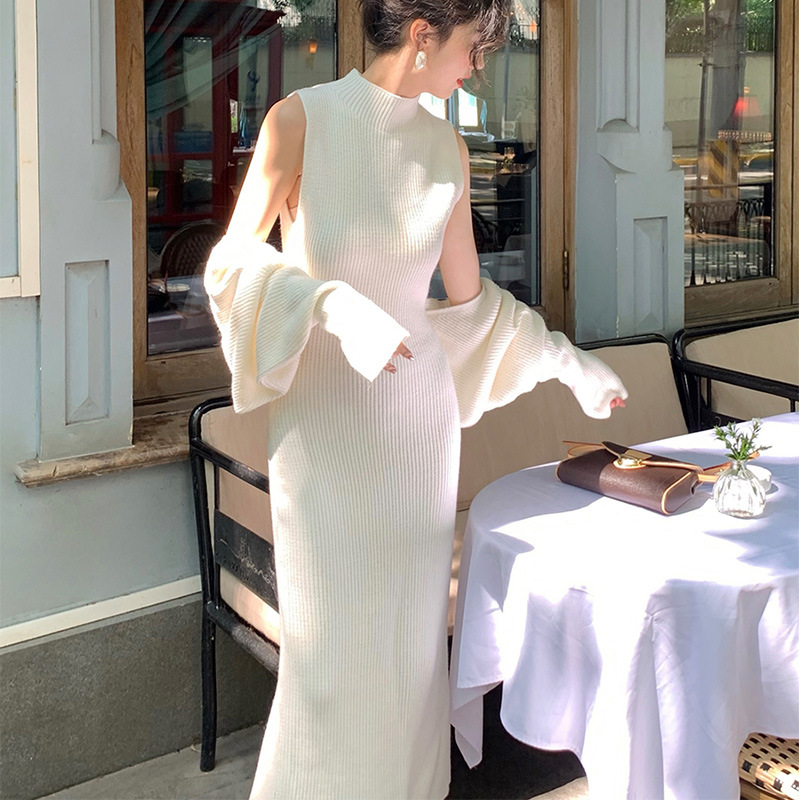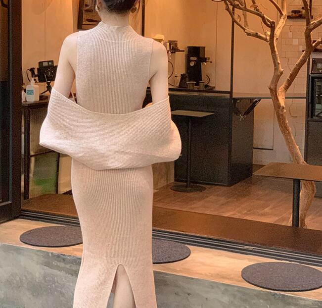 上品なリブ編みが美しいニットロングワンピース。