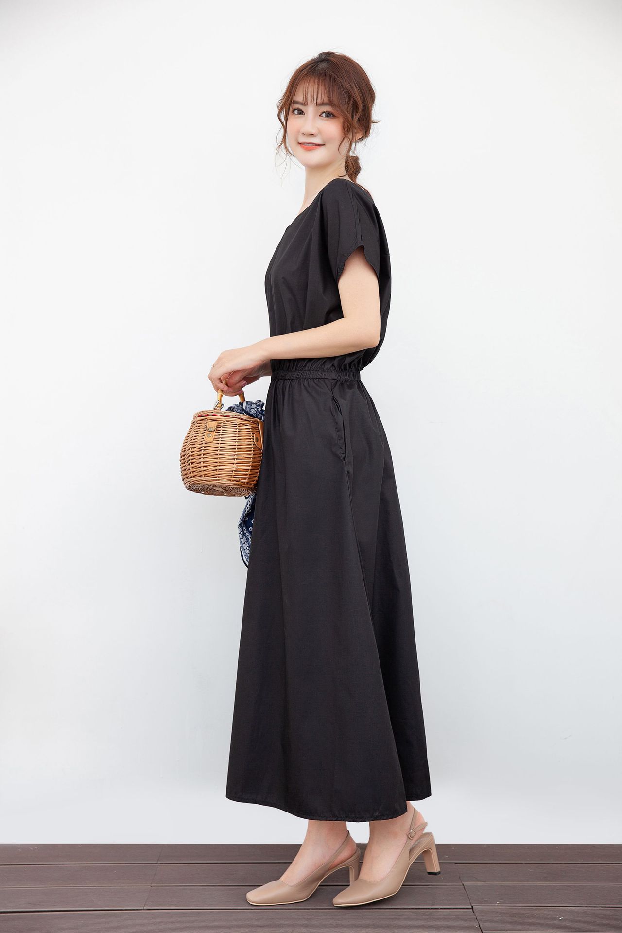 ロングワンピースならではの上品さで体型カバー効果も抜群です。