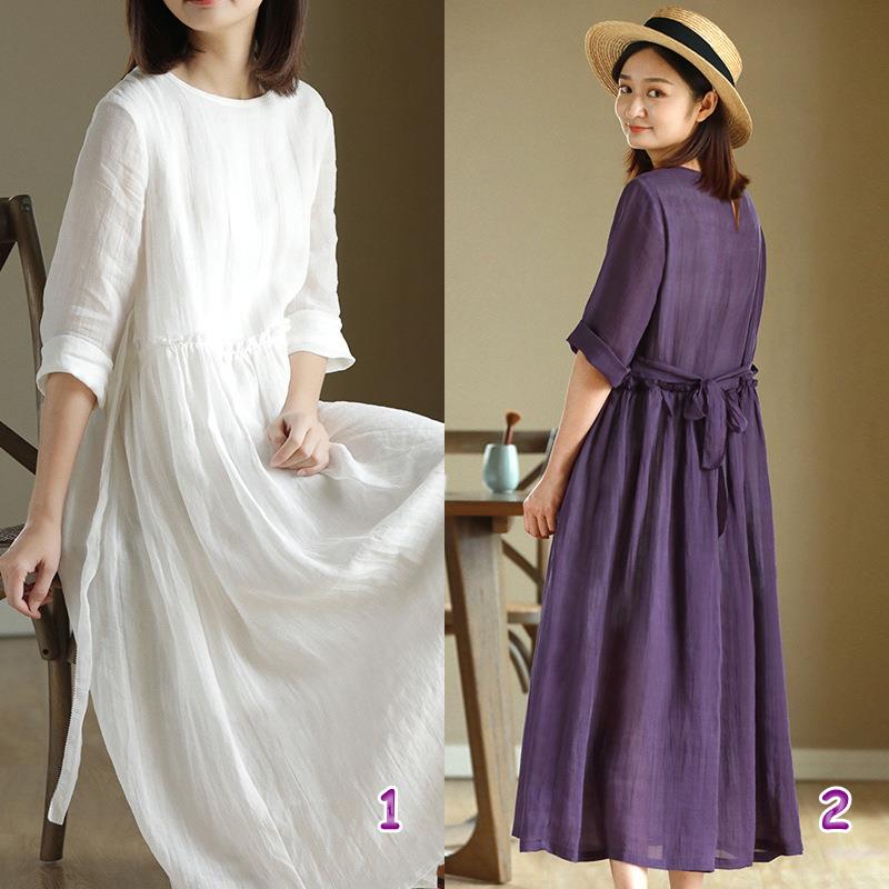 腰にはリボンベルト付きでスタイルアップ効果も抜群。