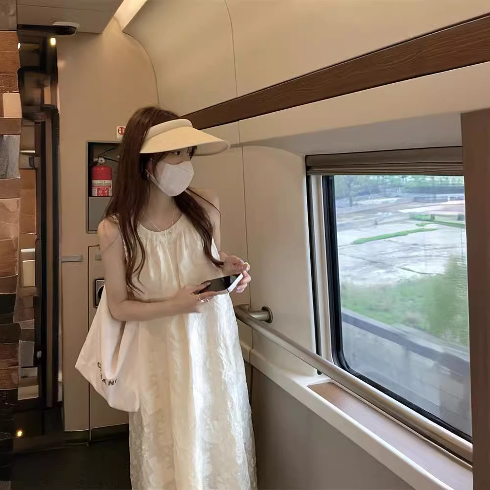 夏にぴったりの涼しげなノースリーブロングワンピースです。