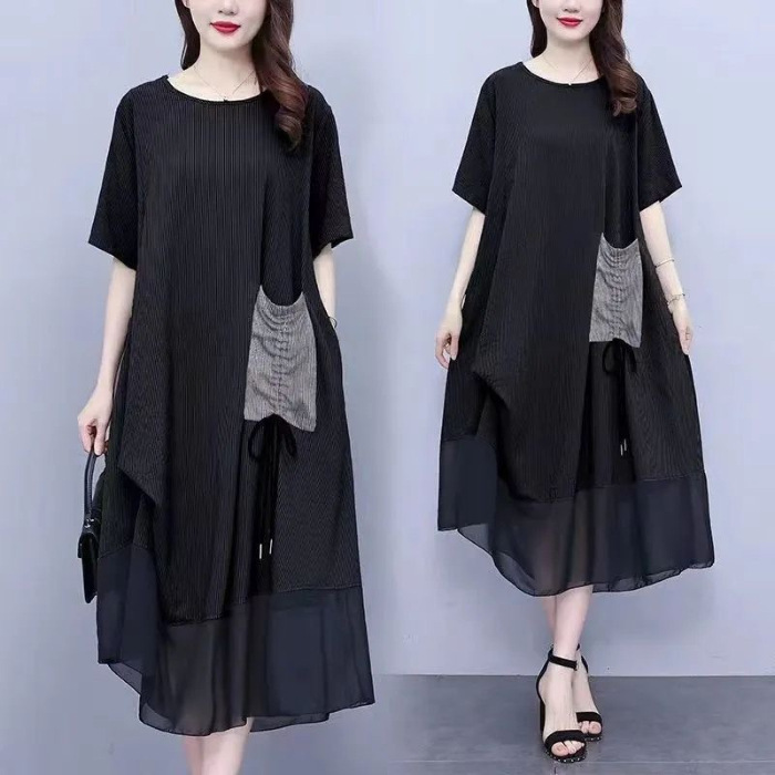 異素材の組み合わせが大人の女性らしさを演出し、体型カバー効果も抜群。