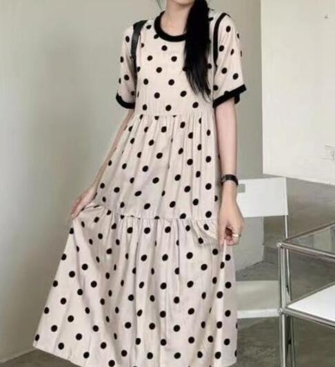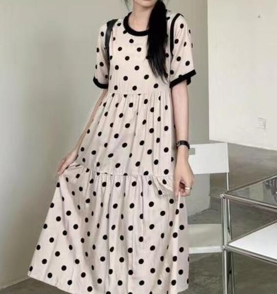 今季注目の水玉柄が可愛いフレアロングワンピースが登場。