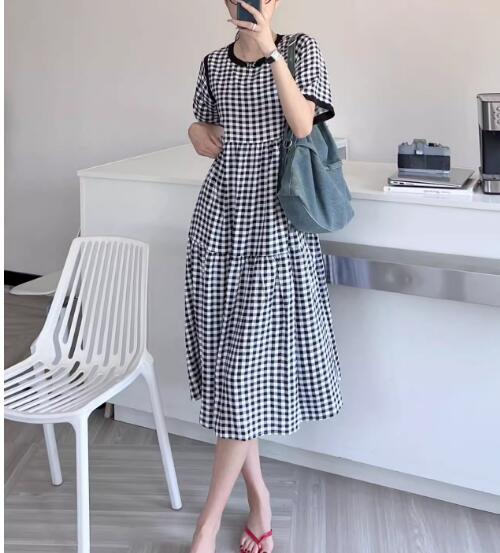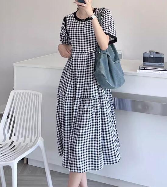 2024年夏の人気新作、涼しげなギンガムチェック柄のフレアロングワンピースです。