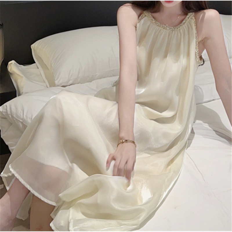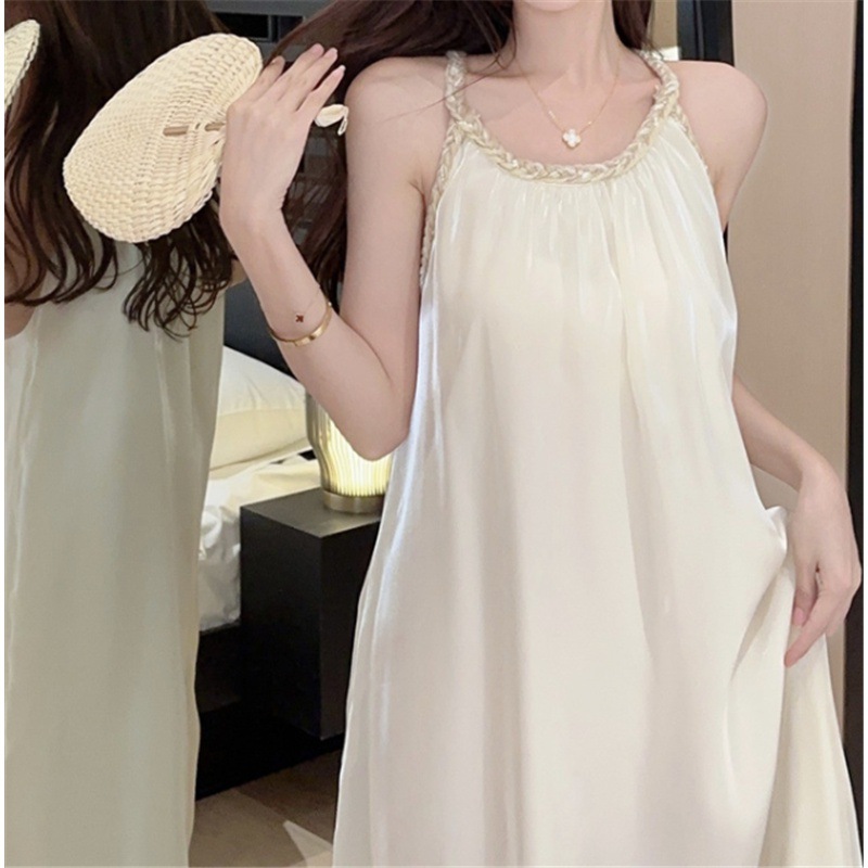 上品な編み込み紐デザインが魅力的なノースリーブのサスペンダーワンピースです。