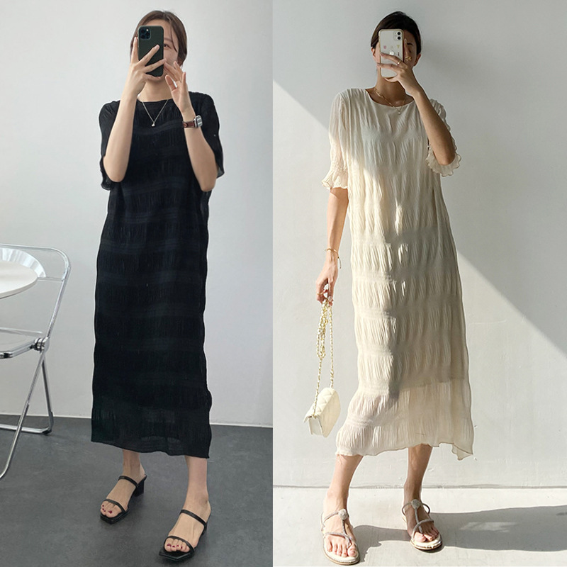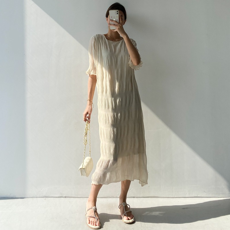 ロングワンピースならではのエレガントなスタイリングをお楽しみください。