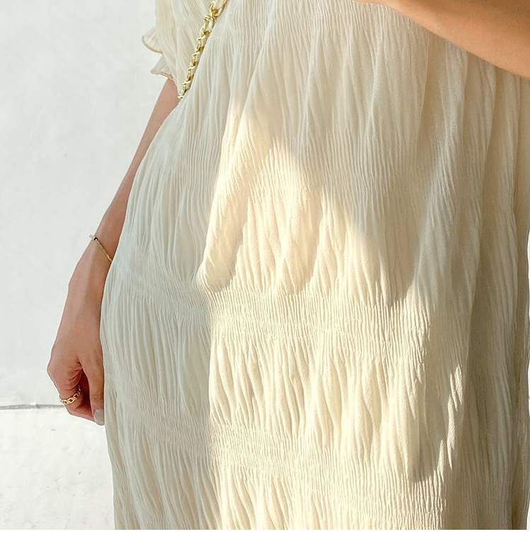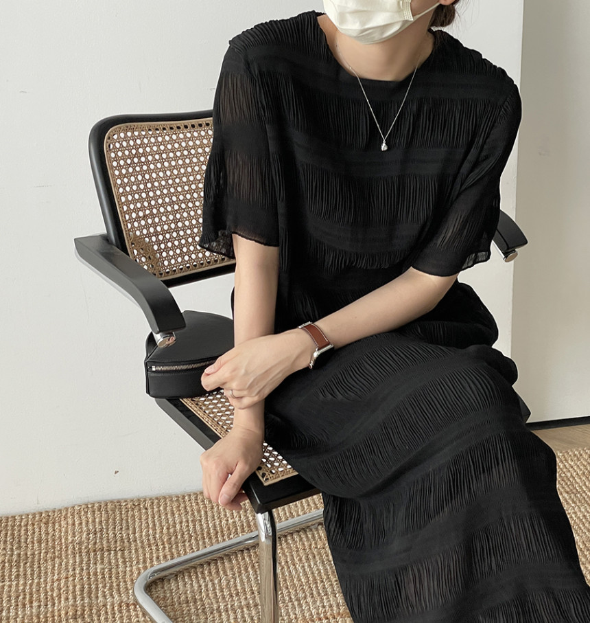 上品なレースデザインが美しい半袖ロングワンピースです。