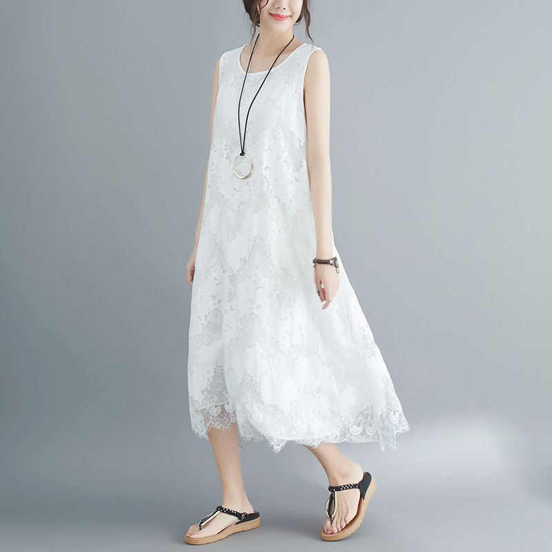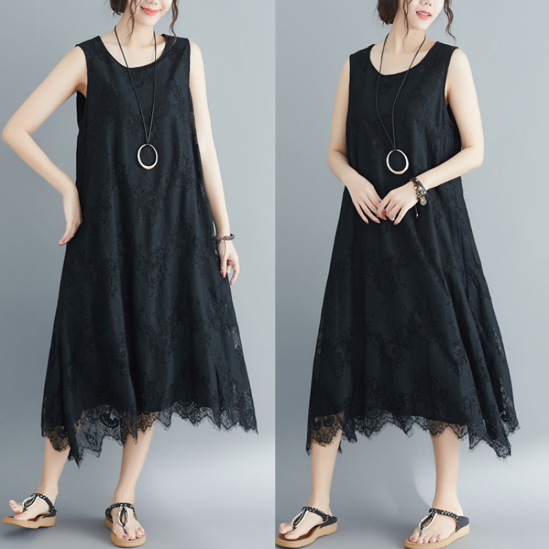上品なレース素材を使用したノースリーブのロングワンピースです。