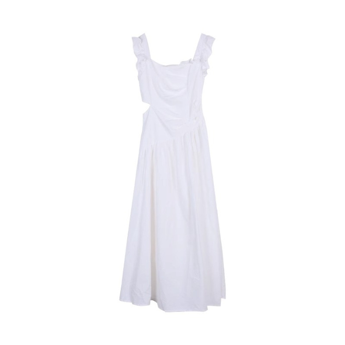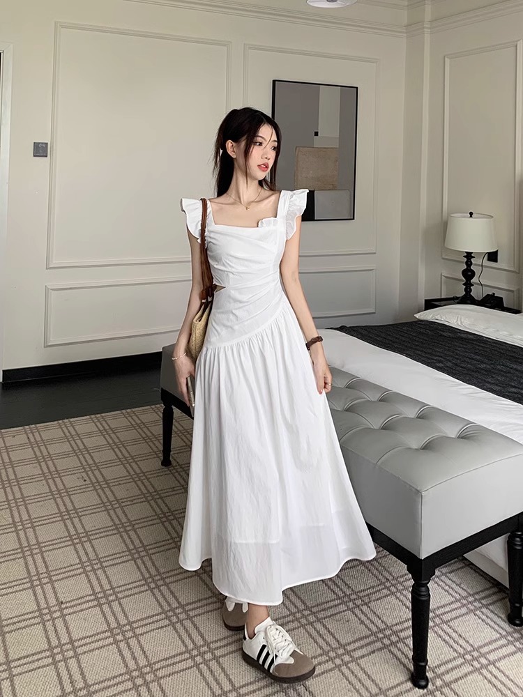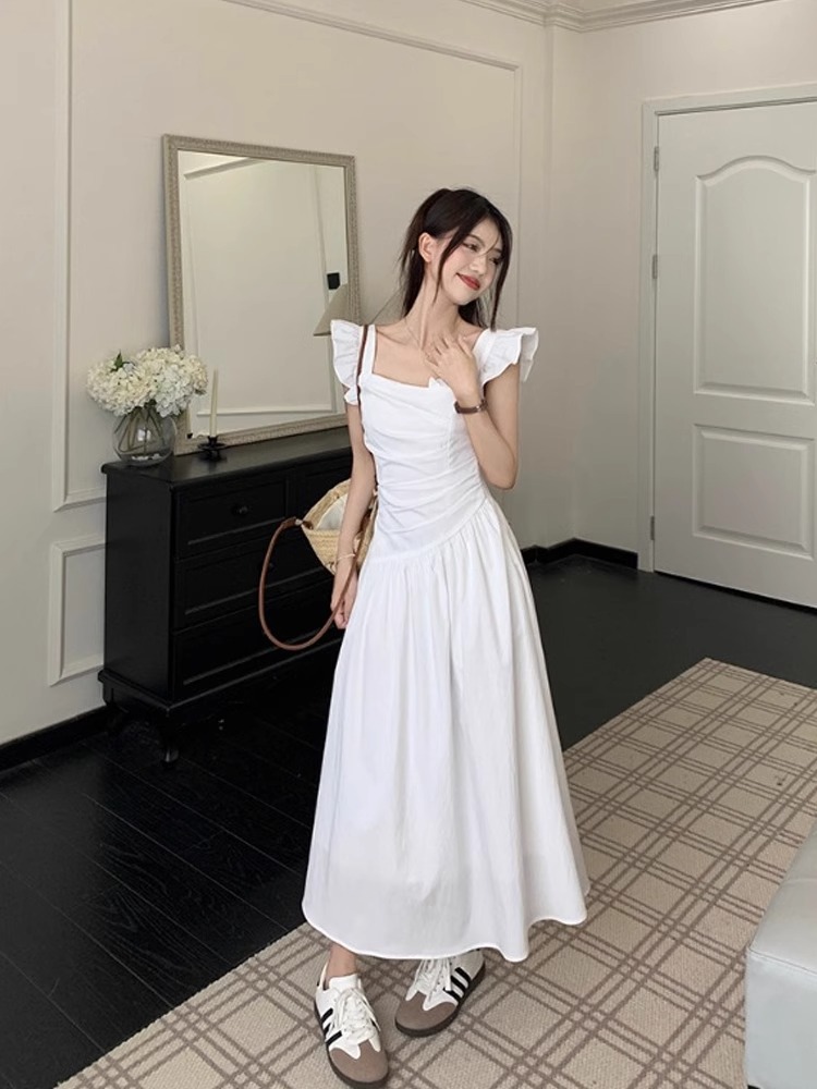 胸元のスクエアネックとフリル袖がフェミニンな印象を演出します。
