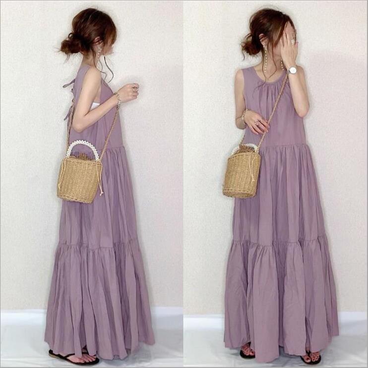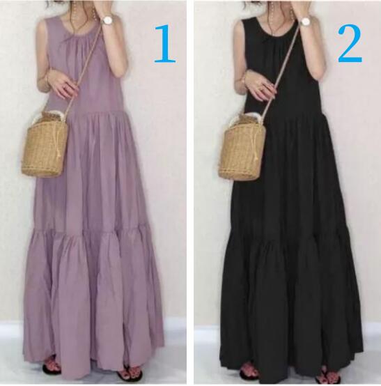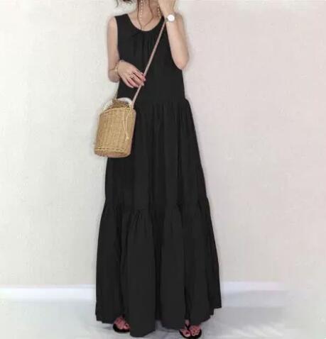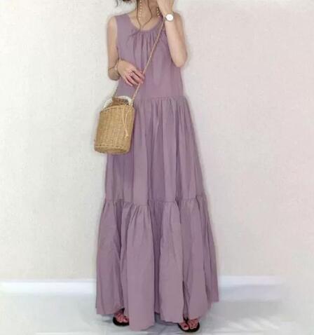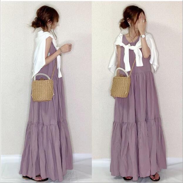 涼しげなノースリーブデザインが魅力的なロングワンピースです。