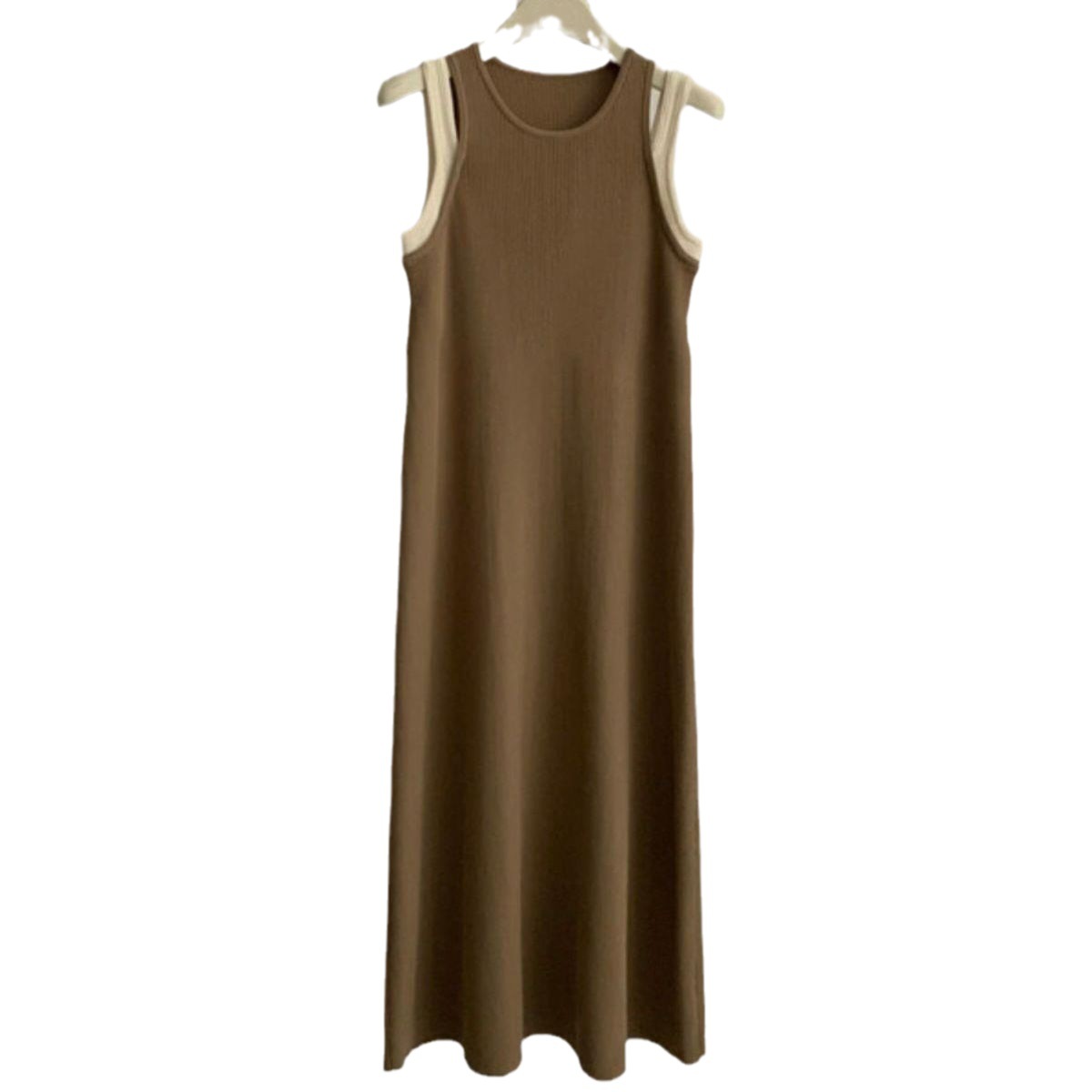 シンプルで上品なノースリーブデザインのロングワンピースです。