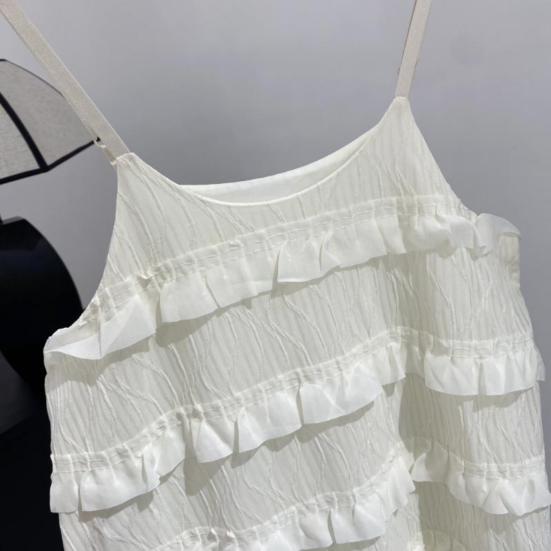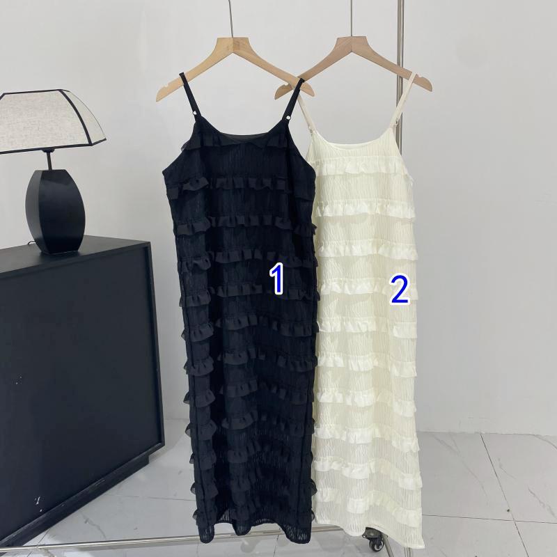 上品なフリンジデザインが美しいキャミタイプのロングワンピース。