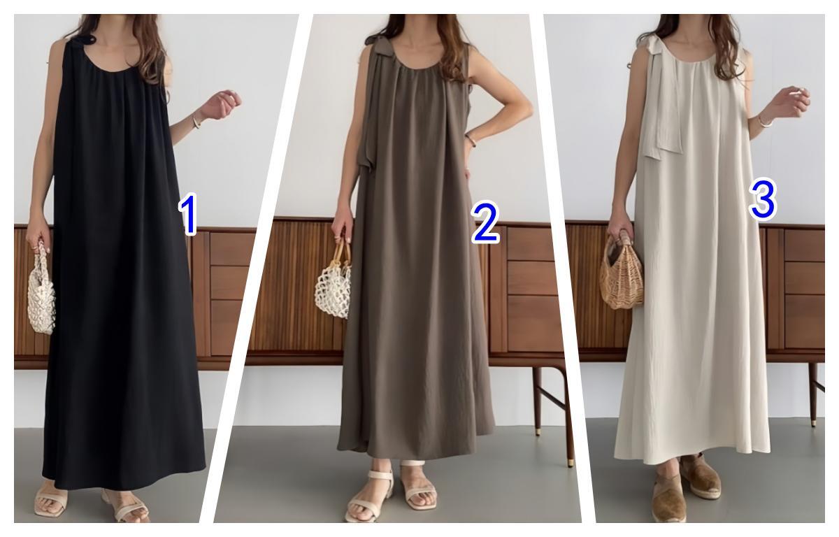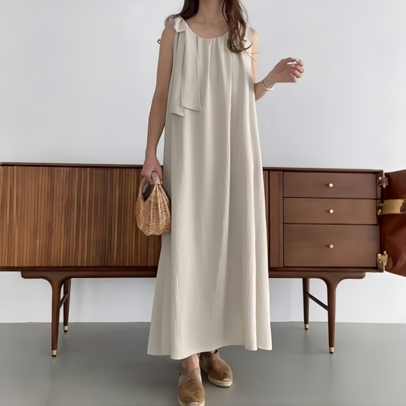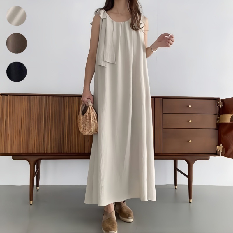 洗練された大人の女性に向けた、上品なノースリーブのロングワンピースです。
