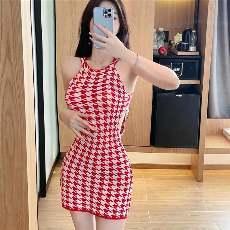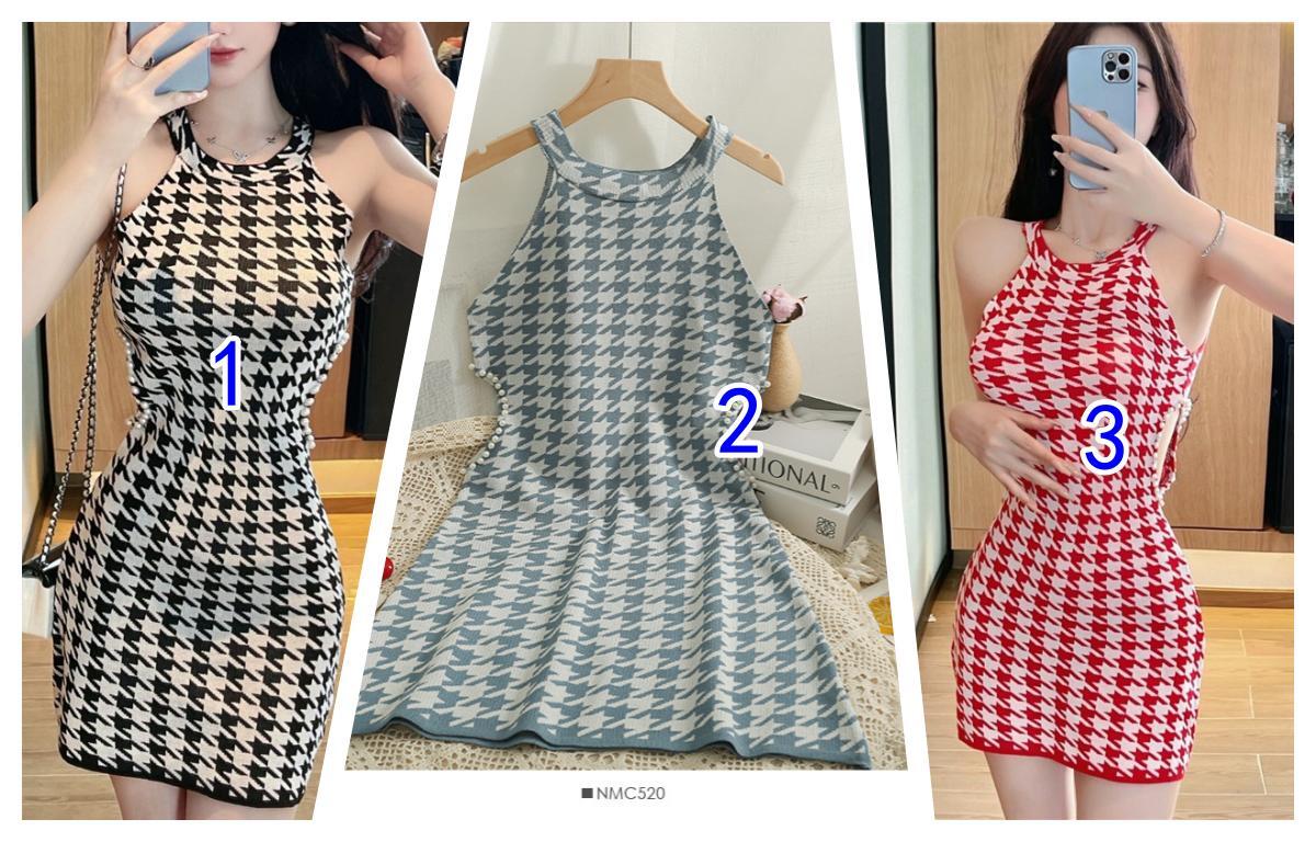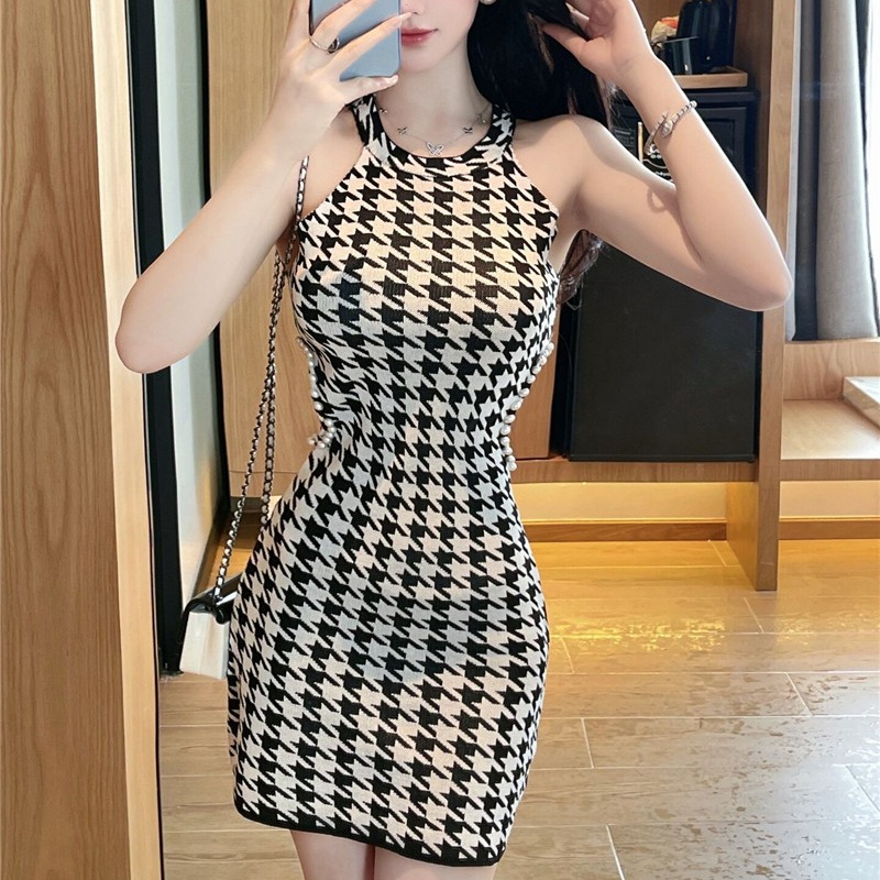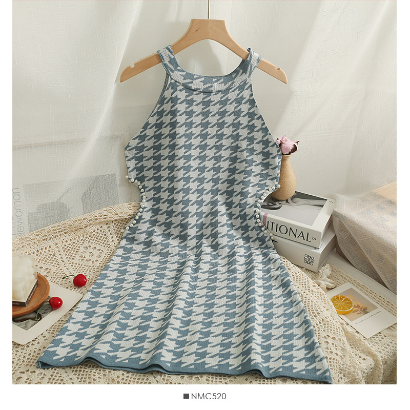 人気の千鳥格子柄が上品で洗練された印象を演出するノースリーブニットワンピースです。