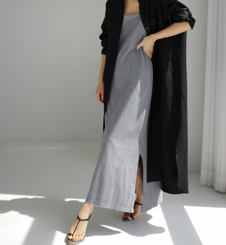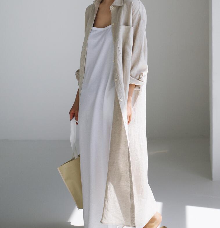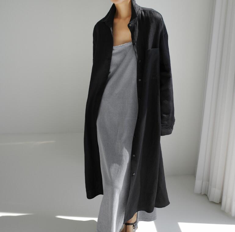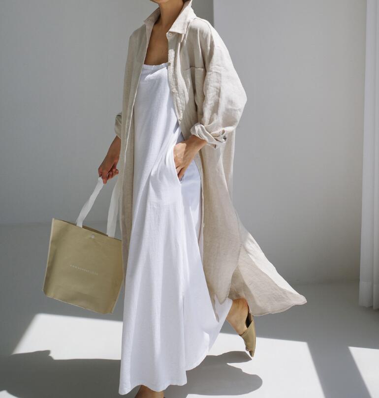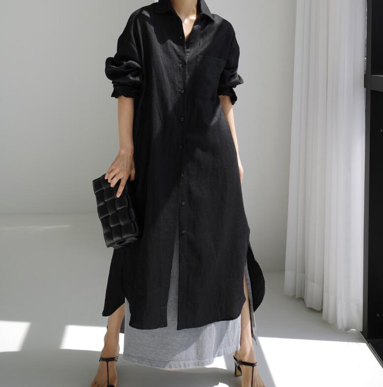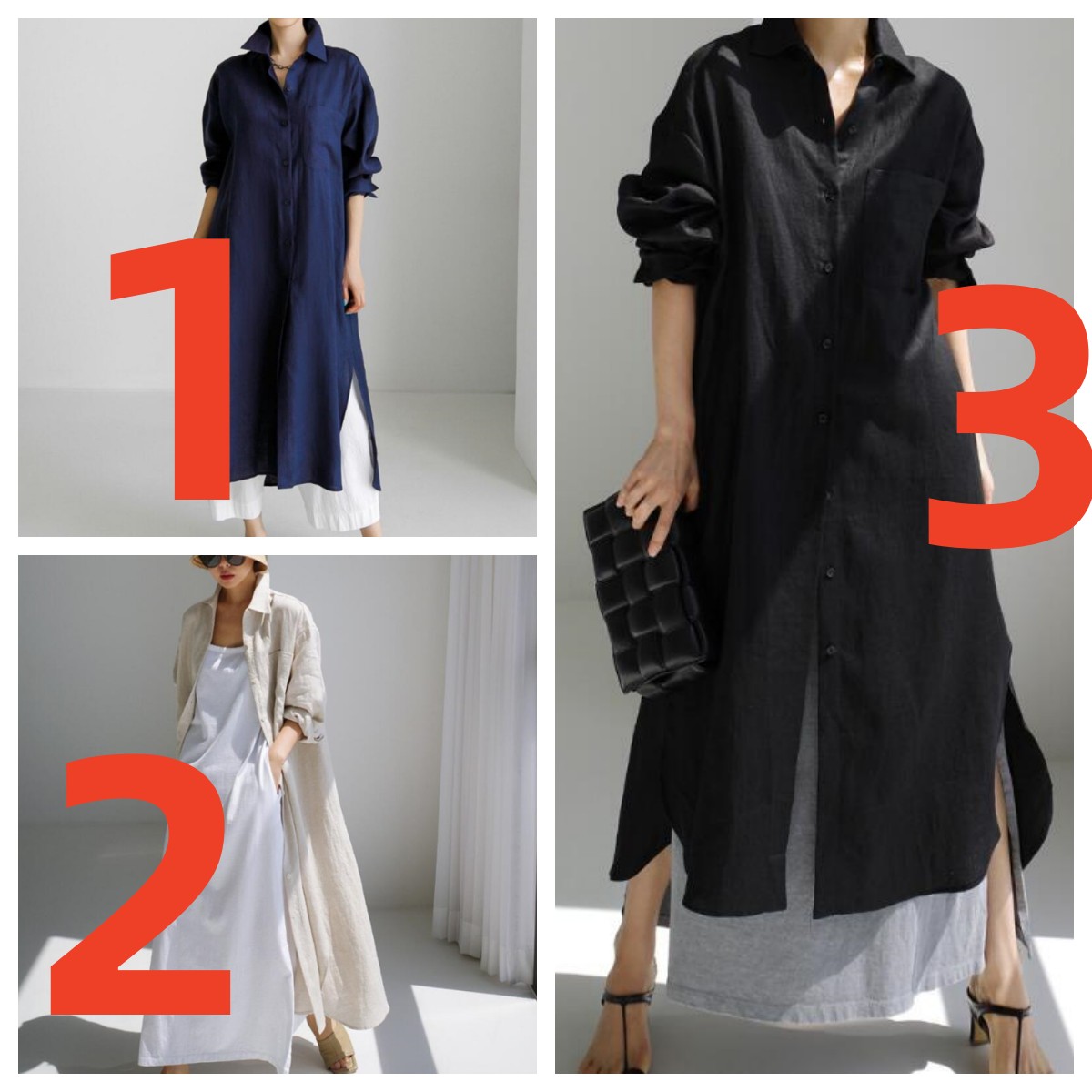 夏にぴったりの麻綿混素材を使用した日系デザインのシャツワンピース。