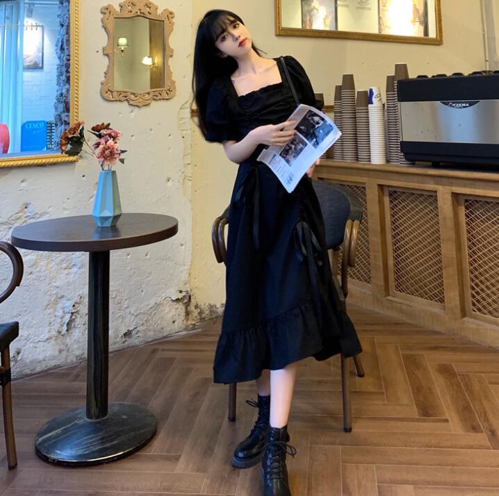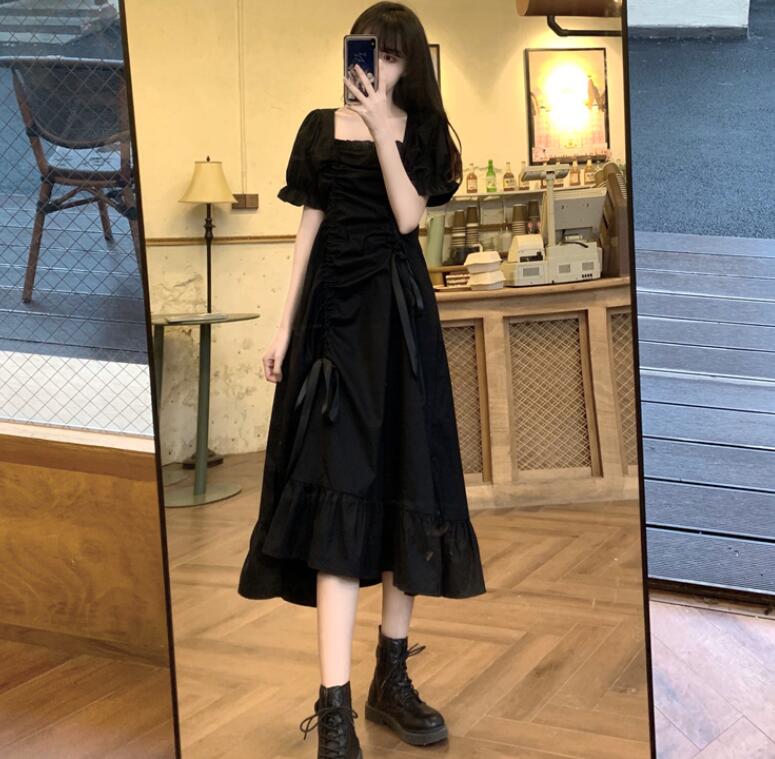 エレガントなフリルデザインが魅力的なロングワンピースです。