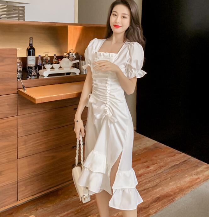 袖口と裾に施された上品なフリルが女性らしさを演出し、韓国風のモダンなスタイルを実現。