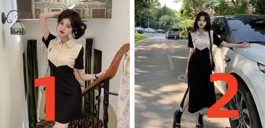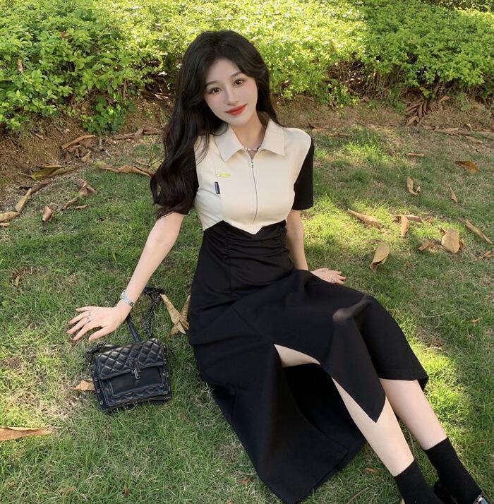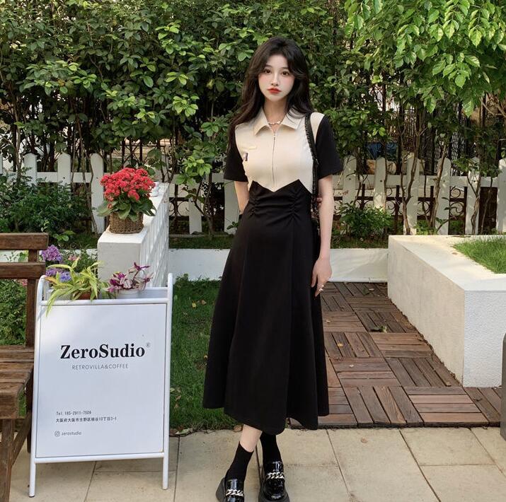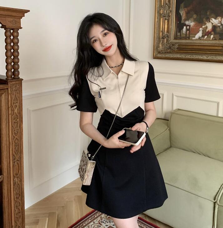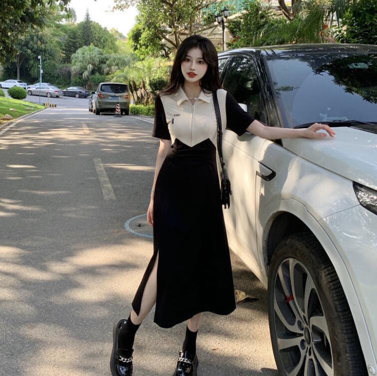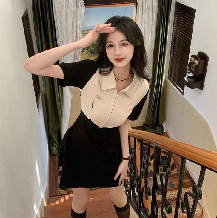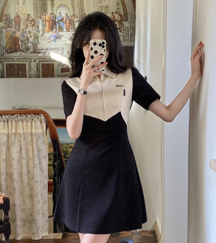 上品なポロシャツデザインが魅力的な韓国風ワンピースです。