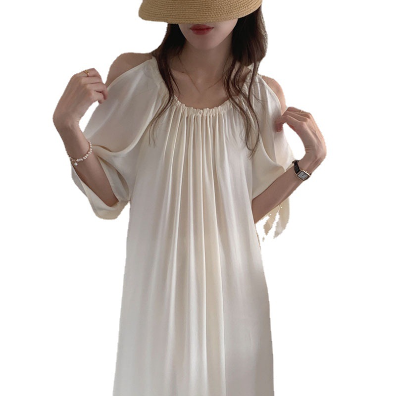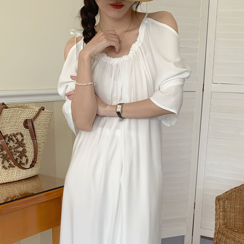 肩見せオフショルダーデザインで女性らしさを演出します。