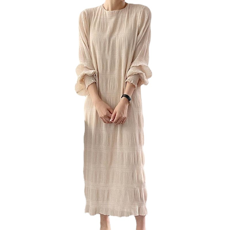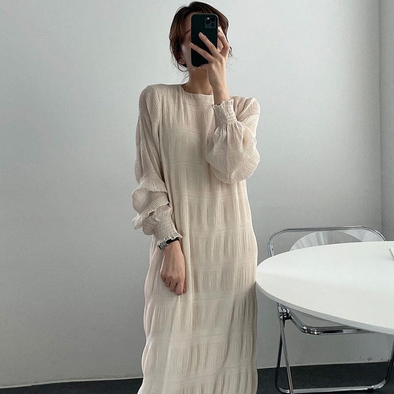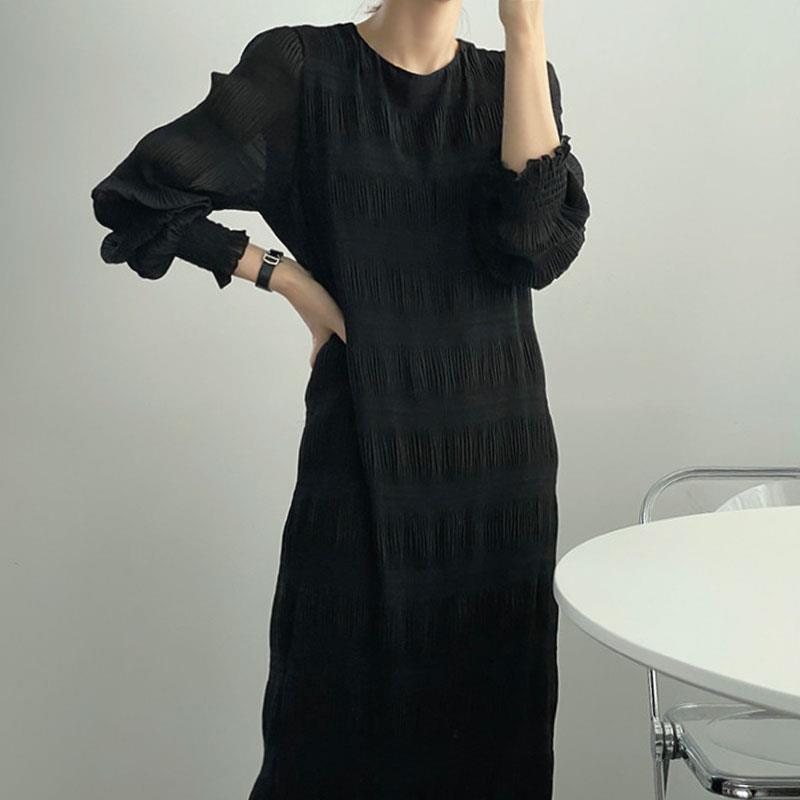 エレガントなフリルデザインが魅力的なロングワンピースです。