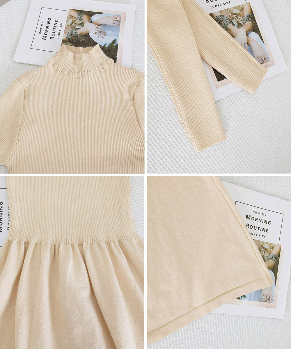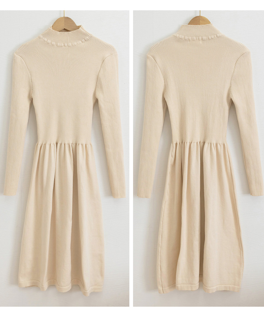 タートルネックデザインが上品な印象を演出するロングワンピース。