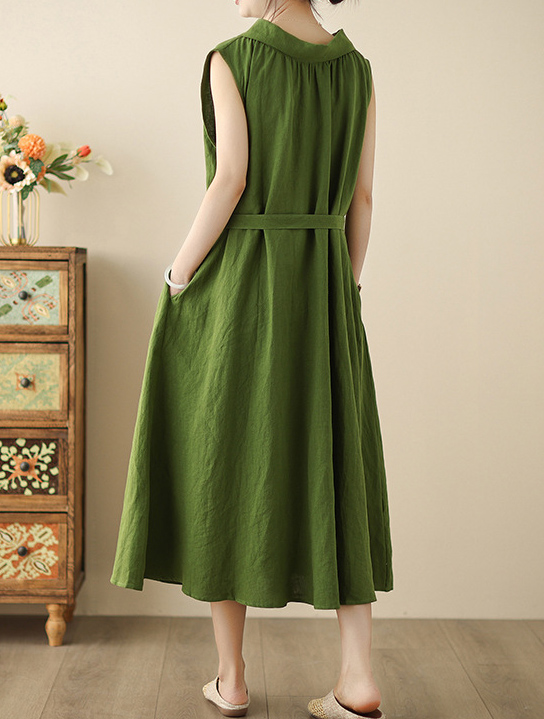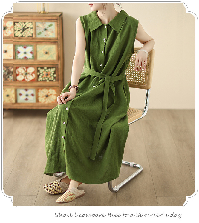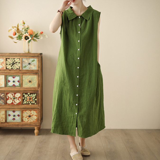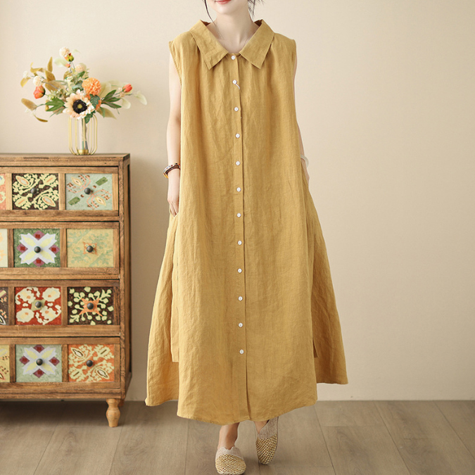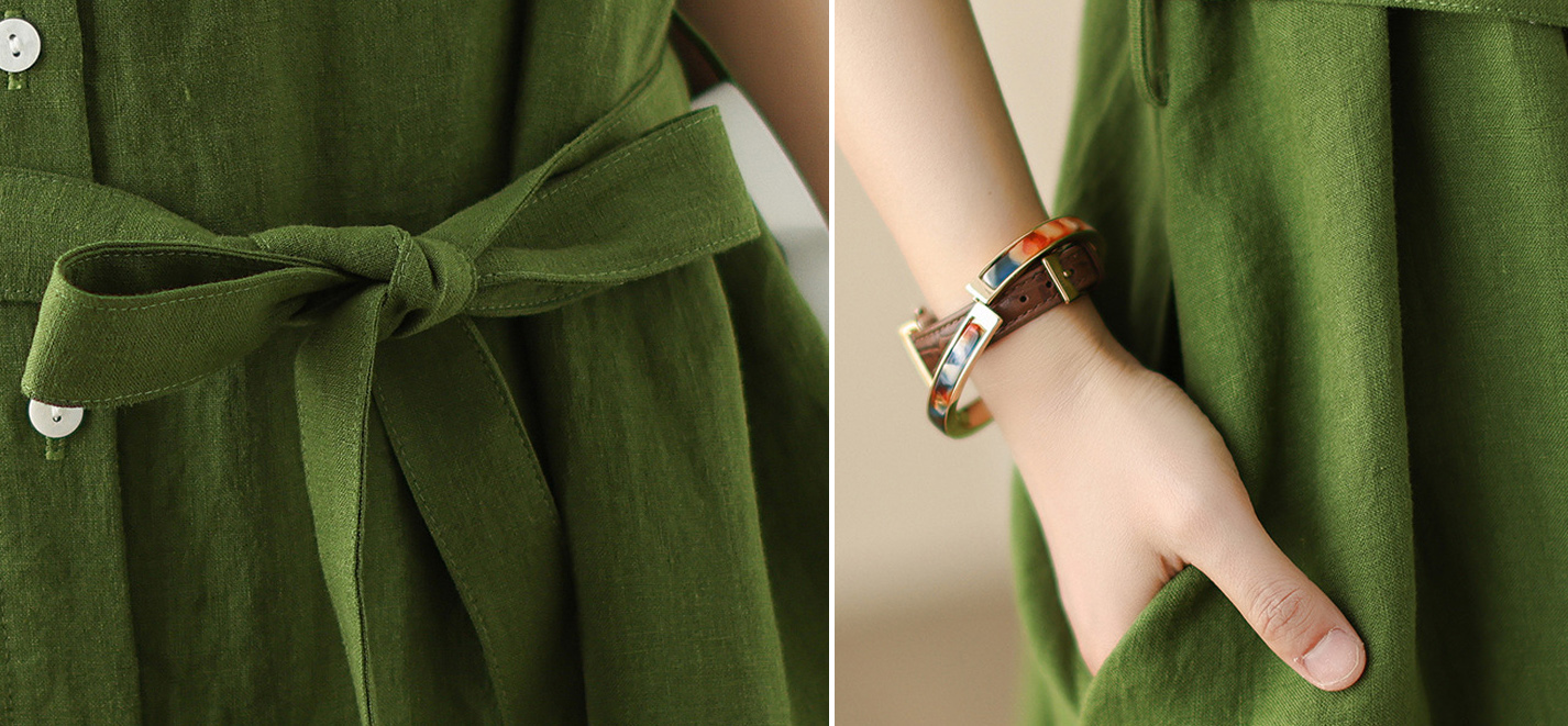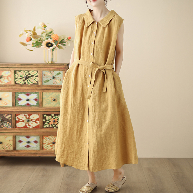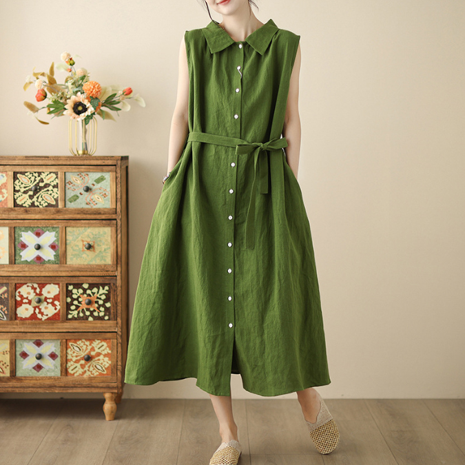 上品な襟付きデザインが魅力的な綿麻素材のシャツワンピースです。
