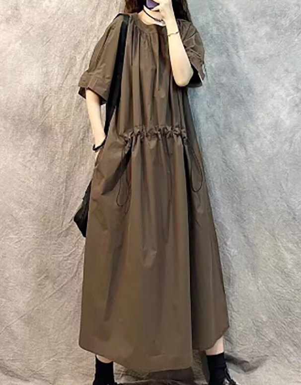 上品な半袖デザインとロング丈で、一枚でおしゃれに決まる優秀アイテムです。