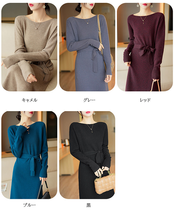 ■コメント ・モードな印象に仕上げたニットワンピース。 ・顔周りを華やかにする絶妙な開き具合のネックデザイン。 ・程よいタイトなシルエットと生地の厚みが着やせ効果あり。 ・エレガントな印象を与えるミモレ丈。 ・ショート丈のブルゾンを羽織ったり、大人っぽく見せたいときはショートブーツやパンプスがおすすめです。 ■サイズ(単位:約cm) ワンサイズ 総丈97cm バスト90cm 袖丈56cm ■カラー 画像の色 ■伸縮性 あり ■裏地 なし ■生地の厚さ 普通 ■透け感 なし ■素材 ポリエステル100%