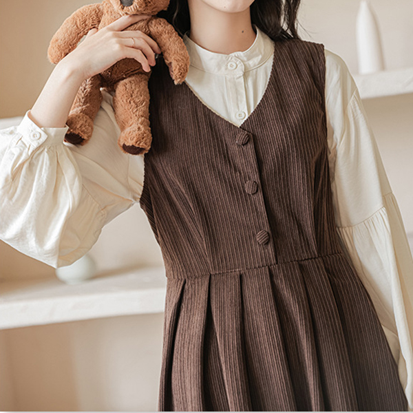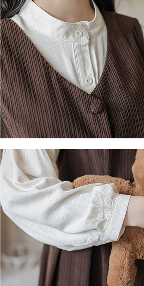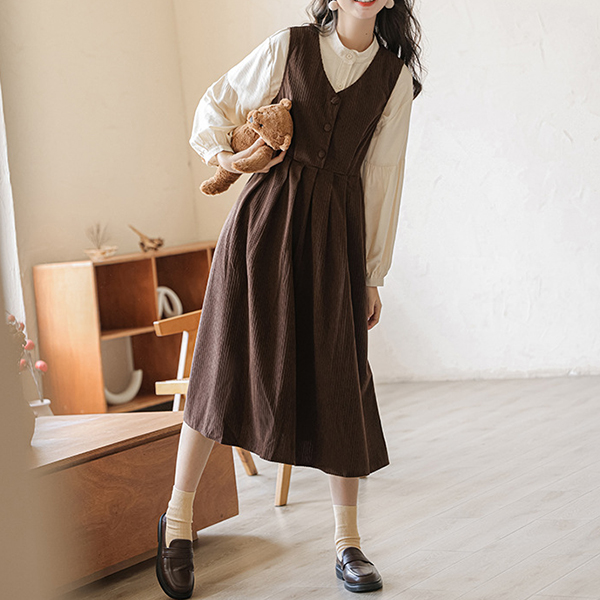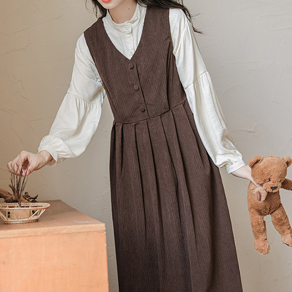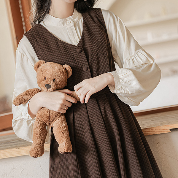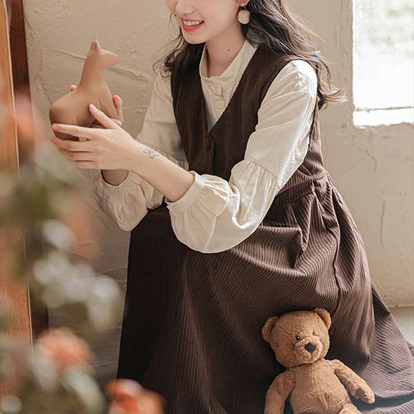 ■コメント ・シャツと合わせて大人カジュアルに着こなせるジャンパースカート。 ・季節を楽しめるコーデュロイ素材。 ・ウエストまわりをすっきり見せてくれる紐付き。 ・裾に向かってふんわり広がるAラインがきれいな一着です。 ■サイズ(単位:約cm) M(普通) シャツ:バスト108 袖丈52 着丈66 / スカート:バスト90 ウエスト90 総丈110 XL(大きめ) シャツ:バスト116 袖丈54 着丈68 / スカート:バスト98 ウエスト98 総丈112 ■カラー 画像の色 ■伸縮性 なし ■裏地 なし ■生地の厚さ 普通 ■透け感 なし ■素材 シャツ:ポリエステル100% スカート:ポリエステル100%