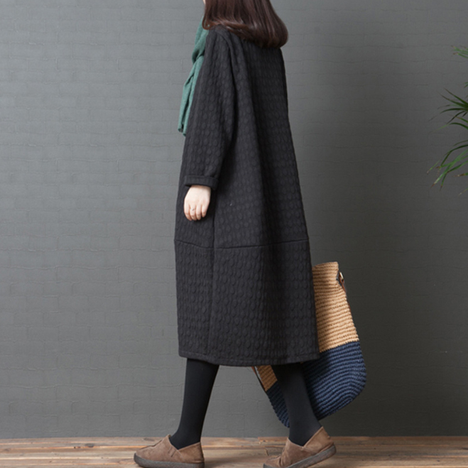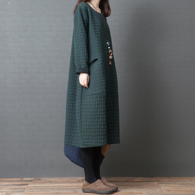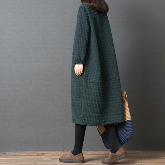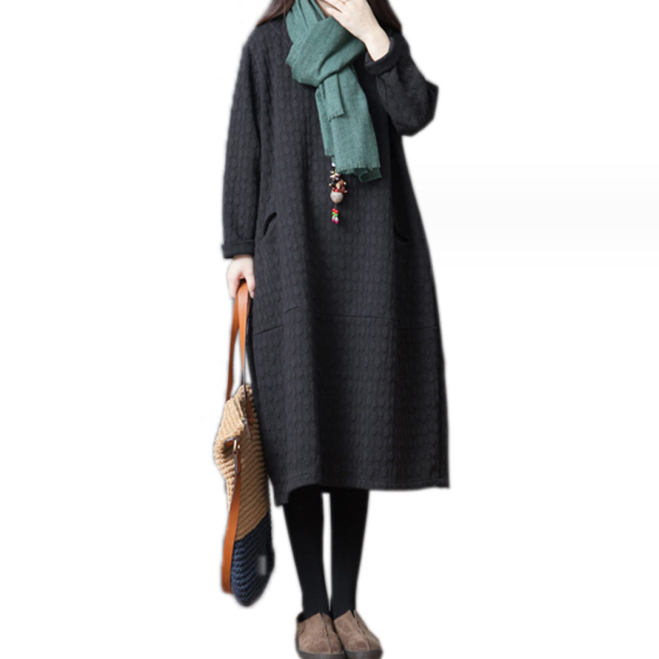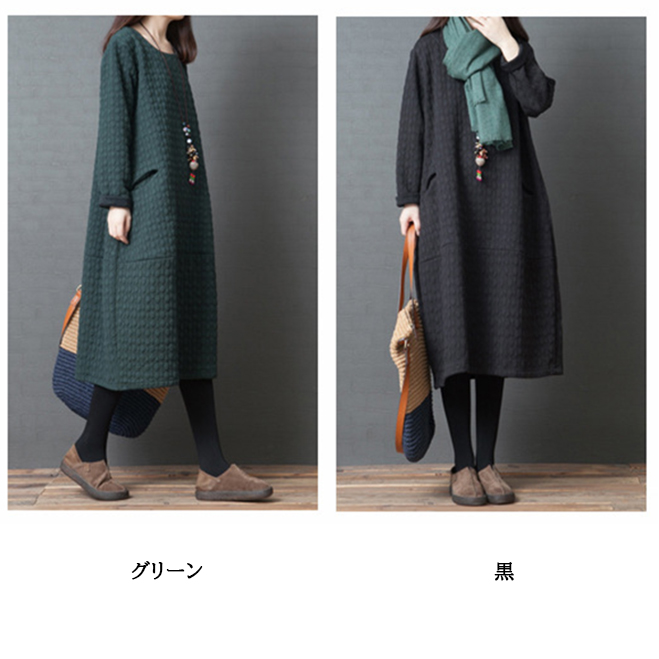 ■コメント ・エンボス加工された地模様が素敵なオーバーシルエットワンピース。 ・程よい厚みのある生地感、ボディラインを拾わず、気になるお腹周りやヒップ周りもカバーしてくれます。 ・ひざ丈なのでワンピースとしてはもちろん、チュニックとして着こなしもできます。 ・シンプル&エレガントなデザインなので、デイリー使いだけでなく、ちょっとしたお出かけ用にもおすすめ。 ■サイズ(単位:約cm) M(普通)着丈95 バスト100 肩幅39 袖口25 袖丈56 裾回り124(OK) XL(大きめ)着丈97 バスト108 肩幅41 袖口27 袖丈58 裾回り132 ■カラー 画像の通り ■伸縮性 なし ■裏地 なし ■生地の厚さ 普通 ■透け感 なし ■素材 ポリエステル70%綿30%