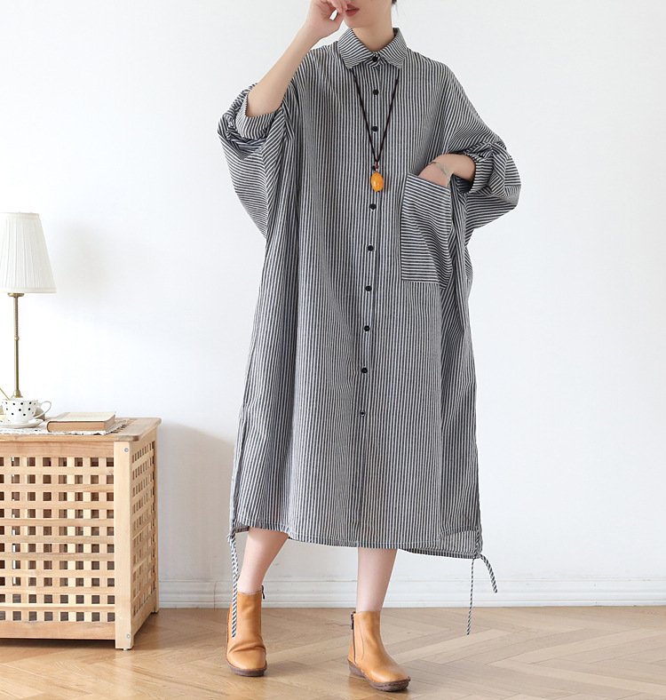 ■コメント ・縦のストライプ柄で着痩せ効果が期待できます。 ・ボタンを開ければ羽織りとしても着用できます。 ・ボディラインを拾わず、気になるお腹周りやヒップ周りもカバーしてくれます。 ・全体的にナチュラルな雰囲気で、これ1枚でコーデが完成します。 ■サイズ(単位:約cm) 普通(L) バスト126 着丈112 袖丈59 ビッグ(2XL) バスト134 着丈112 袖丈59 ■カラー 画像に記載 ■伸縮性 なし ■裏地 なし ■生地の厚さ 普通 ■透け感 なし ■素材 ポリエステル100%
