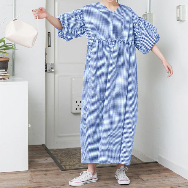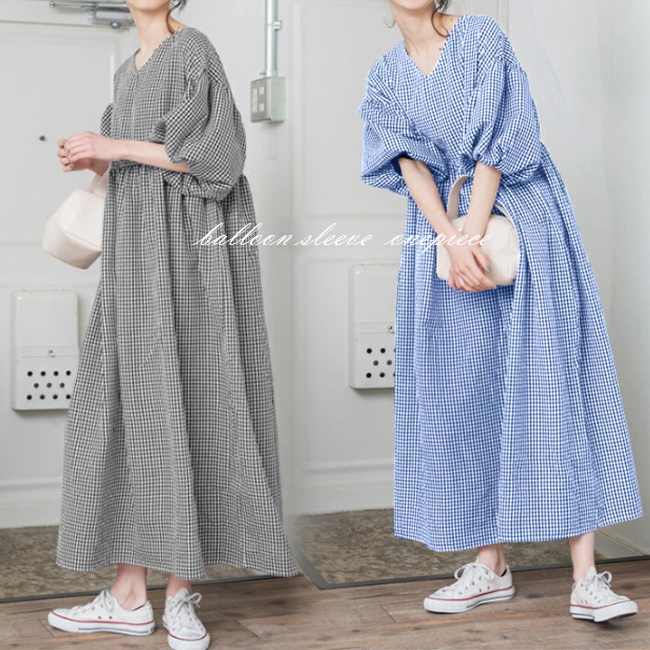 ■コメント ・女性らしい華やかさがあるバルーンスリーブ。 ・Vネックでお顔周りがスッキリとした印象。 ・カジュアルになりすぎないきれいめな丈感。 ・ボディラインを拾わず、ゆったり着られます。 ・これ1枚で夏のお出かけスタイルが完成します。 ■サイズ(単位:約cm) フリーサイズ 普通(M) 肩幅:44 バスト:102着丈:113袖丈:25 ビッグ(XL) 肩幅:48 バスト:110着丈:118袖丈:25 ■カラー 画像に記載 ■伸縮性 なし ■裏地 なし ■生地の厚さ 普通 ■透け感 なし ■素材 ポリエステル100%