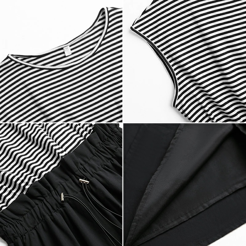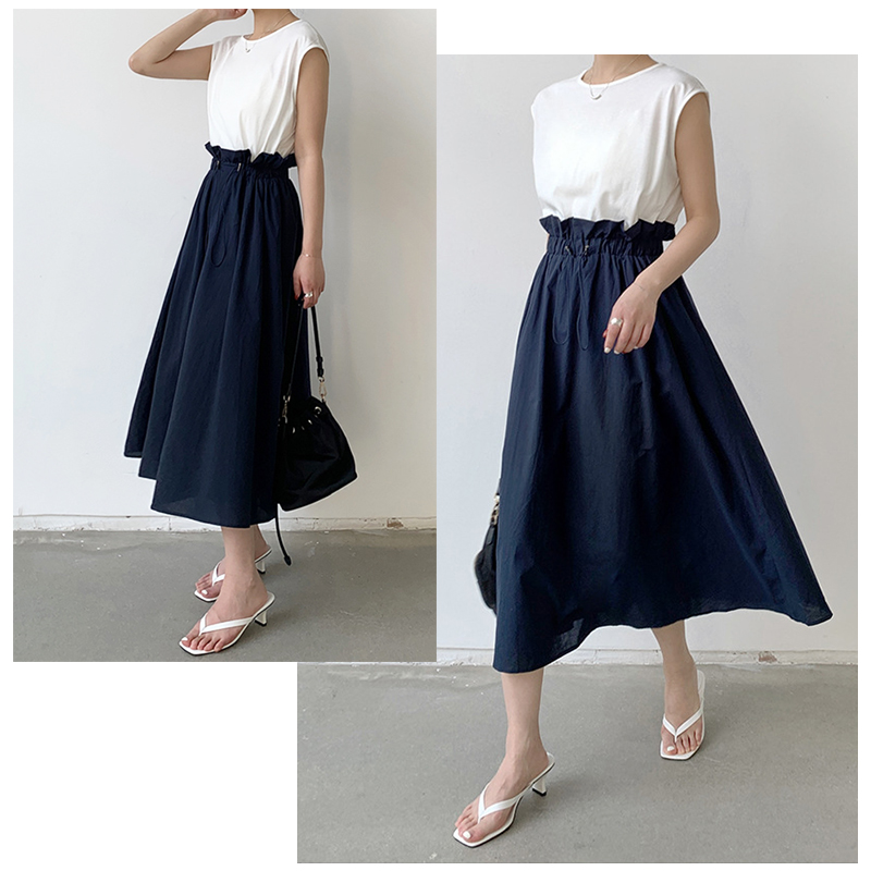 ■コメント ・これ1枚でオシャレコーデが完成!ドッキングワンピース。 ・ウエスト部分にはドローコードがついているのでゆったり着たりキュッと絞ったりと調節ができます。 ・ウエスト部分はフリルになっていてかわいさもプラス。 ・ハイウエストデザインなので脚長効果は抜群です。 ・スカートは女性らしいフレアシルエットで動くたびふんわりと広がります。 。 ■サイズ(単位:約cm) 普通(M) 着丈 120cm 肩幅 49cm バスト 100cm(OK) ビッグ(2XL) 着丈 125cm 肩幅 52cm バスト 112cm(OK) ■カラー 画像に記載 ■伸縮性 なし ■裏地 あり ■生地の厚さ 普通 ■透け感 ホワイトの部分:ややあり ■素材 ポリエステル65%、綿35%