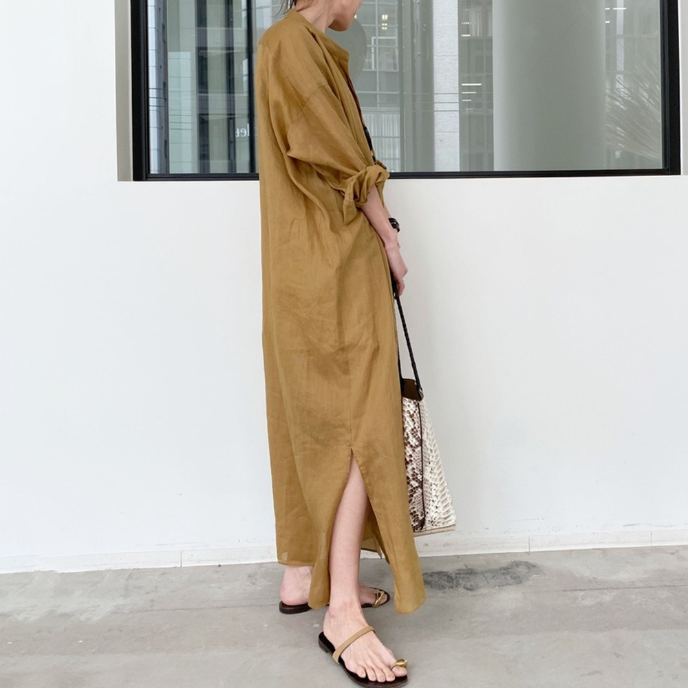 ■コメント ・薄手でサラッと着こなせるスリット入りシャツワンピース。 ・ボタンを閉じてワンピースとしても、ボタンを開けて羽織りとしても使える2way。 ・涼しげかつ上品な印象です。 ・抜け感のあるスリット入りで動きやすいです。 ・ボディラインを拾わずお洒落に体系カバーしてくれます。 ・ヒールからスニーカーまで幅広いコーデに合わせやすい1着です。 ■サイズ(単位:約cm) フリーサイズ 総丈115 バスト108 肩幅65 袖丈40(OK) ■カラー 画像に記載 ■伸縮性 なし ■裏地 なし ■生地の厚さ 薄手 ■透け感 ややあり ■素材 ポリエステル100%