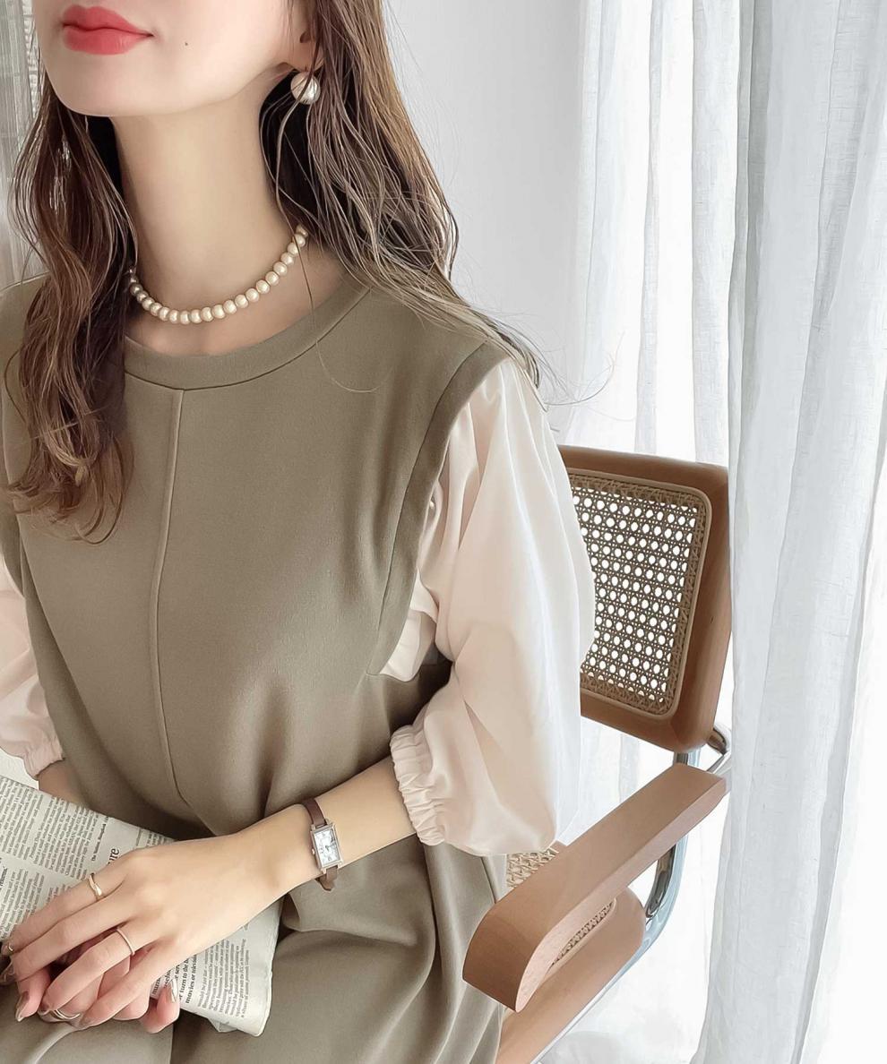 ■コメント ・おしゃれに着こなせる異素材切り替えデザイン。 ・上品さとフェミニンさがMIXされた1着。 ・女性らしくて優しい雰囲気になるふんわりシルエットのぽわん袖。 ・身頃はカットソー素材で動きやすいです。 ・きちんと感がありきれいめな印象なので、授業参観やオフィスシーンなどにも◎。 ■サイズ(単位:約cm) 普通(M) 肩幅35 バスト108 袖丈40 総丈112 ビッグ(XL) 肩幅37 バスト116 袖丈44 総丈117 ■カラー 画像に記載 ■伸縮性 あり ■裏地 なし ■生地の厚さ 普通 ■透け感 なし ■素材 身頃:ポリエステル70%レーヨン30% 袖:ポリエステル80%綿20%