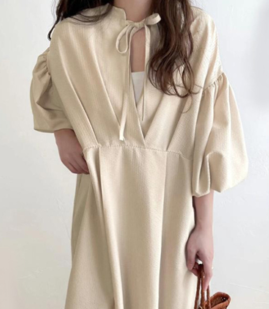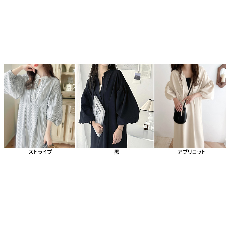 ■コメント ・前後を反対にして着るだけでコーデの印象を変えられるワンピース。 ・肌ざわりが良くサラッと着られます。 ・大人フェミニンな雰囲気を演出するリボン。 ・ボリュームスリーブで二の腕を可愛くカバーしてくれます。 ・ボディラインを拾いにくいです。 ・窮屈感がなくリラクシーな着心地。 ・お出かけやショッピング、通勤にも大活躍。 ■サイズ(単位:約cm) ワンサイズ(Mサイズ相当) 身幅55 総丈125 そで丈52 ■カラー 画像に記載 ■伸縮性 なし ■裏地 なし ■生地の厚さ 普通 ■透け感 なし ■素材 ポリエステル100%