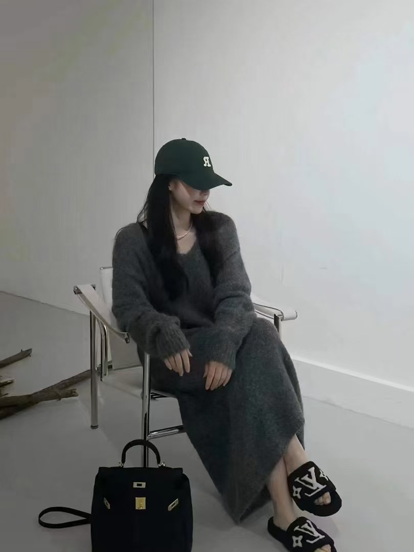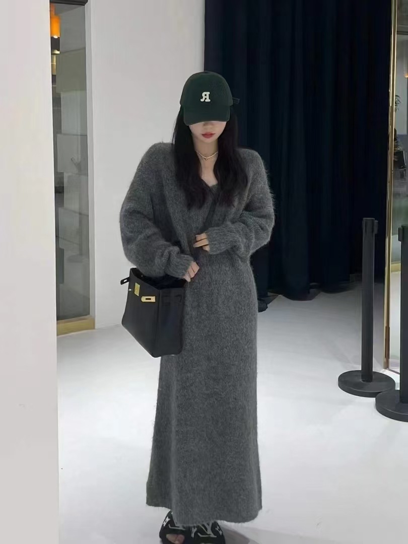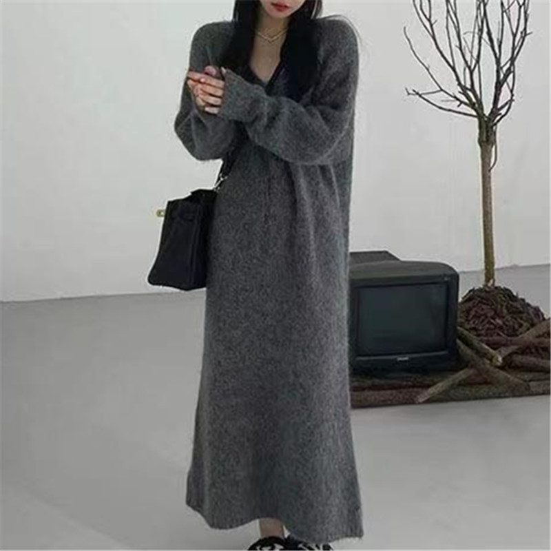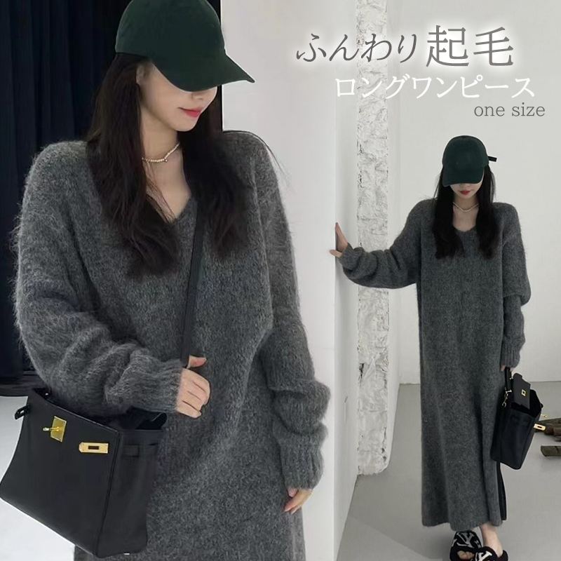 ふんわりと柔らかな起毛素材を使用したニットのロングワンピース。