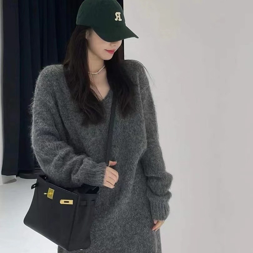 深めのブイネックラインが女性らしさを演出し、ゆったりとしたシルエットで体型カバーも叶います。