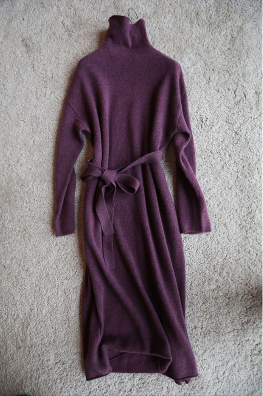 柔らかなニット素材で着心地抜群、ウエストベルトで美しいシルエットを演出。