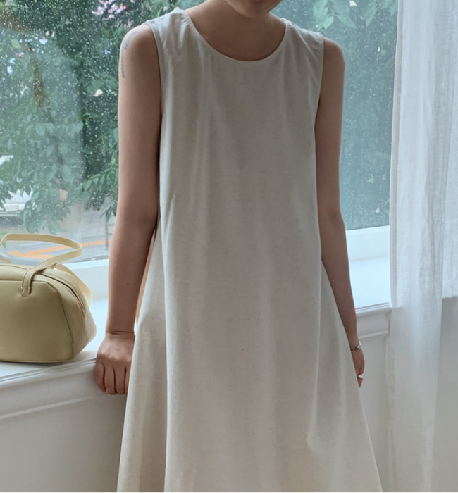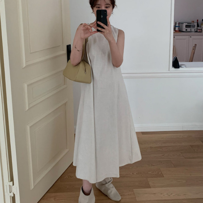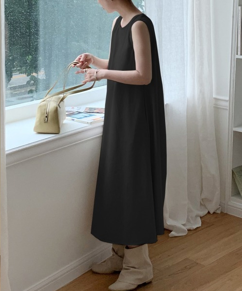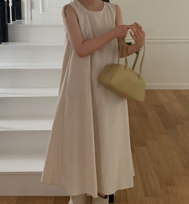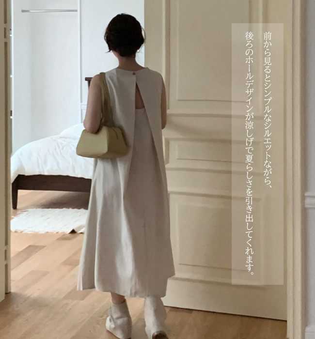 抜け感を演出するバックコンシャスデザインが魅力的なノースリーブロングワンピース。