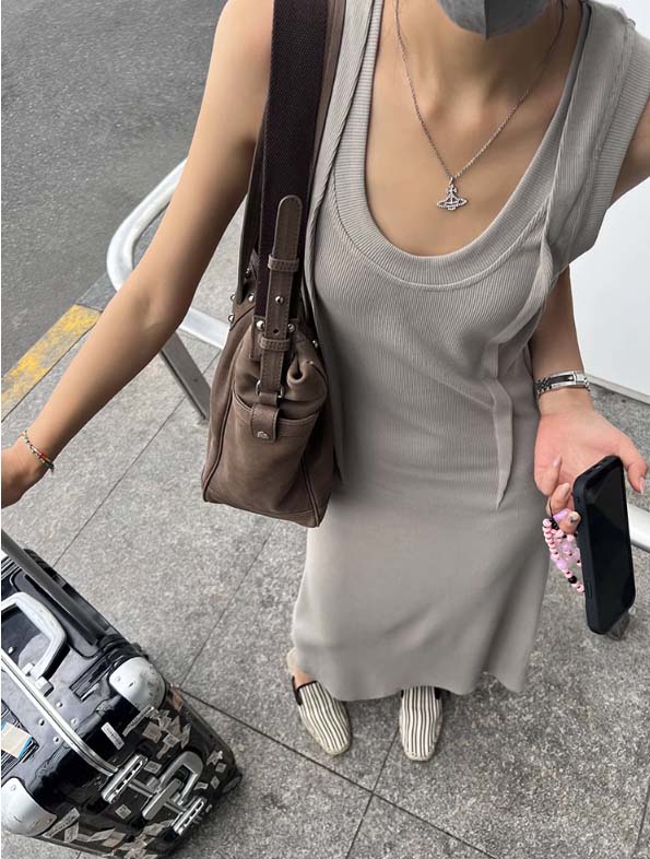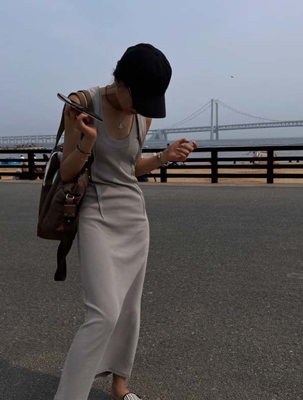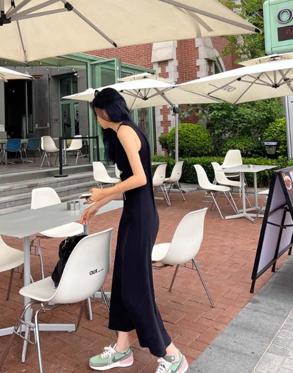快適な着心地を実現したノースリーブのロングワンピースです。